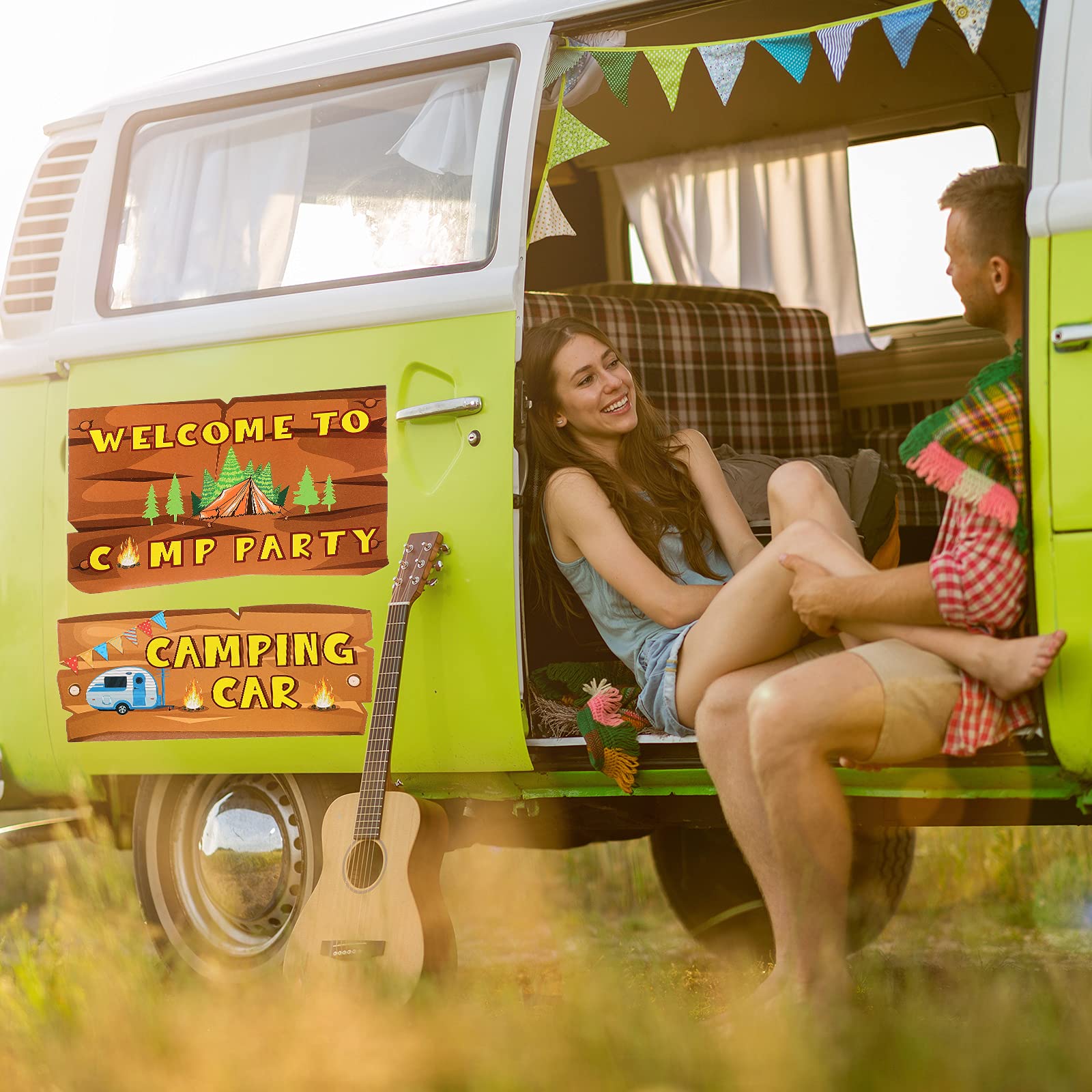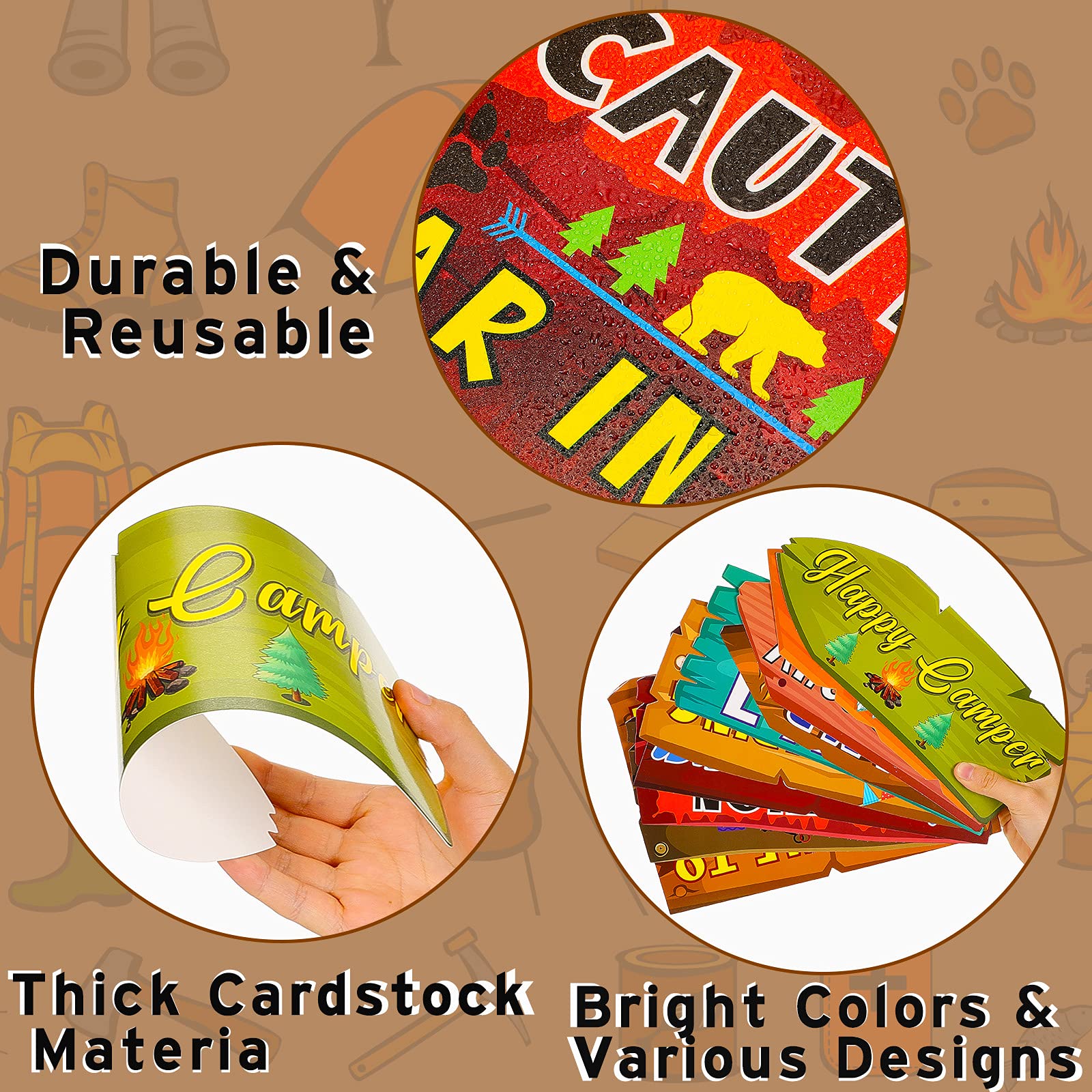 Durable material: the camping party signs are made of thick card stock, durable and reusable, their single-sided printing in vibrant colors is not easy to fade, lasting for a long time; Their resistance to wear and tear makes them keep almost intact, and their smooth surfaces are comfortable to touch