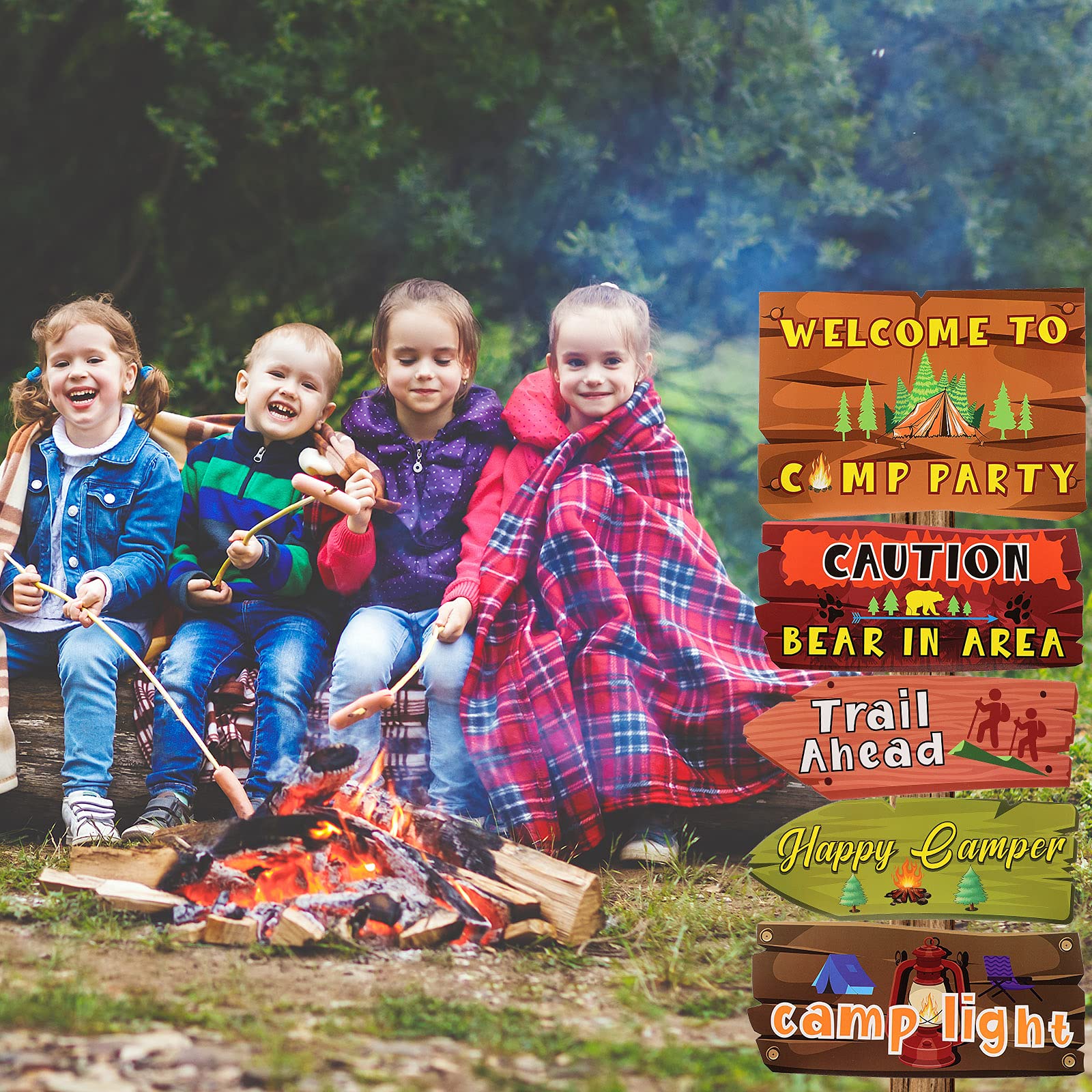 Stylish design: the camping party sign are printed with assorted Camping party Themed ,like camping fire , trail ahead, happy camper etc., the words in big fonts are easy and clear for you to notice and read; Featured with bright color and cute pattern, which well adorn your house and convey the pleasant festive atmosphere effectively
