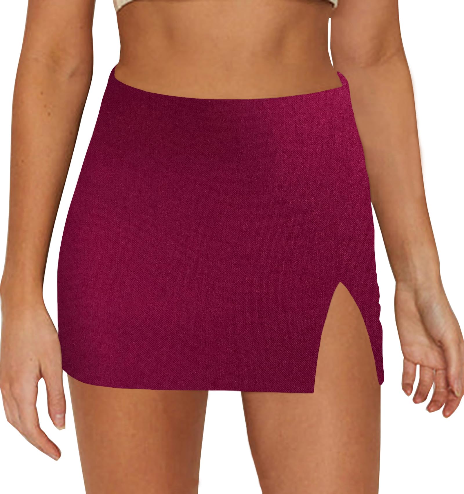 Design features: Black, High waist, Stretch, Fitted, Bodycon, Slit, Mini skirt