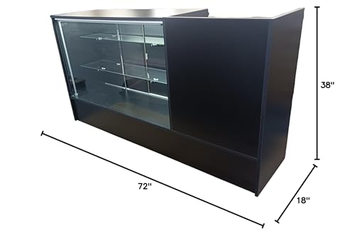 Introducing the revolutionary 2-in-1 Counter - Combo Counter - Full Vision with Register Stand - With LED lights- 6feet from our company. This one-of-a-kind product offers a unique and efficient solution for displaying and storing your products. With a total length of 6 feet, you'll have ample space to showcase your merchandise and attract potential customers. But that's not all, this versatile counter offers even more convenience with its 4 feet of display area that includes 2 adjustable glass shelves. This allows you to customize the space according to your specific needs, making it ideal for a variety of products. Additionally, the 2 foot register stand with a locking drawer provides a secure and organized place to handle transactions with ease. But functionality is not the only thing this counter has to offer. It also features LED lights that not only add an elegant touch to the overall design but also enhance the visibility of your products. This means that your merchandise will stand out and make a lasting impression on potential customers. With its sleek and modern design, this 2-in-1 counter is not only practical but also adds a touch of sophistication to your store. The dimensions of 72 1/4'' L x 38 1/4'' H x 18'' D make it easy to fit in different spaces, making it a versatile and essential addition to any retail store. Invest in the innovative and practical 2-in-1 Counter - Combo Counter - Full Vision with Register Stand - With LED lights- 6feet from our company and see the difference it makes in the efficiency and aesthetics of your store.