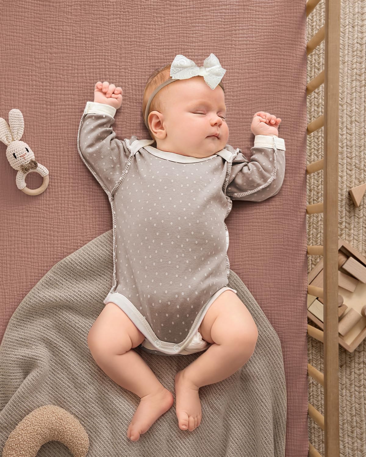 Premiun Muslin Cotton: Made from muslin cotton, our crib sheets are cozy and breathable in all seasons, making babies a better sleep. Plus, the soft muslin material is friendly for your baby's delicate skin
