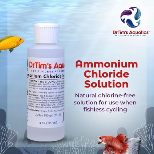 FISHLESS CYCLING AQUARIUM CLEANING TREATMENT: The ammonium chloride solution from DrTim’s Aquatics offers a chlorine-free method for sanitizing new aquaria or when cycling water when fish or coral are not present. This powerful solution makes fishless cycling mess free.