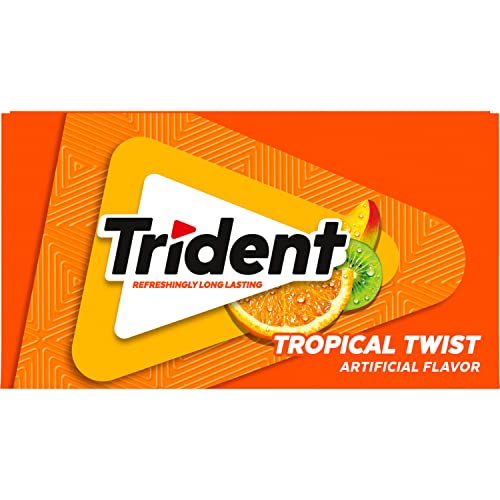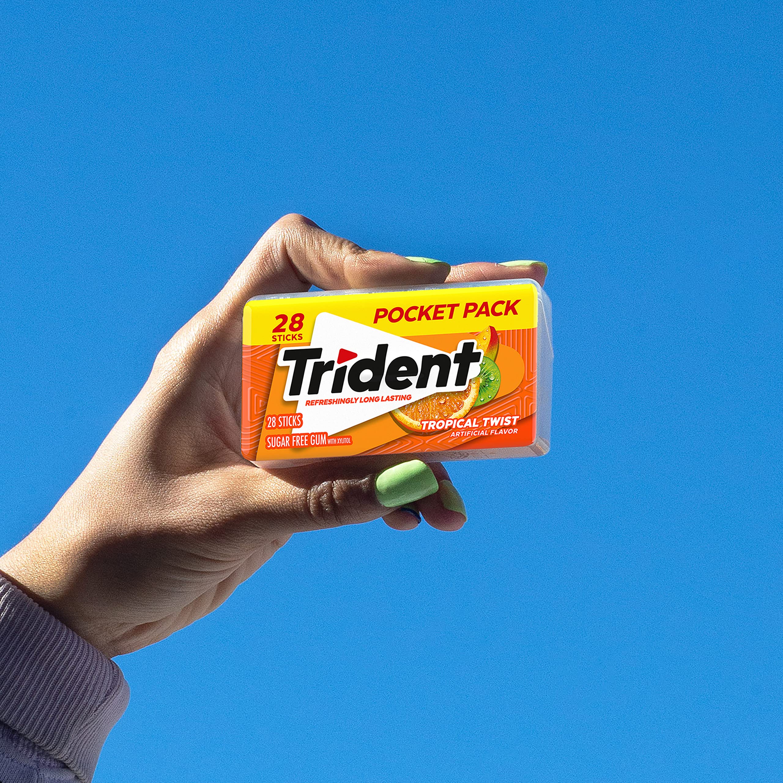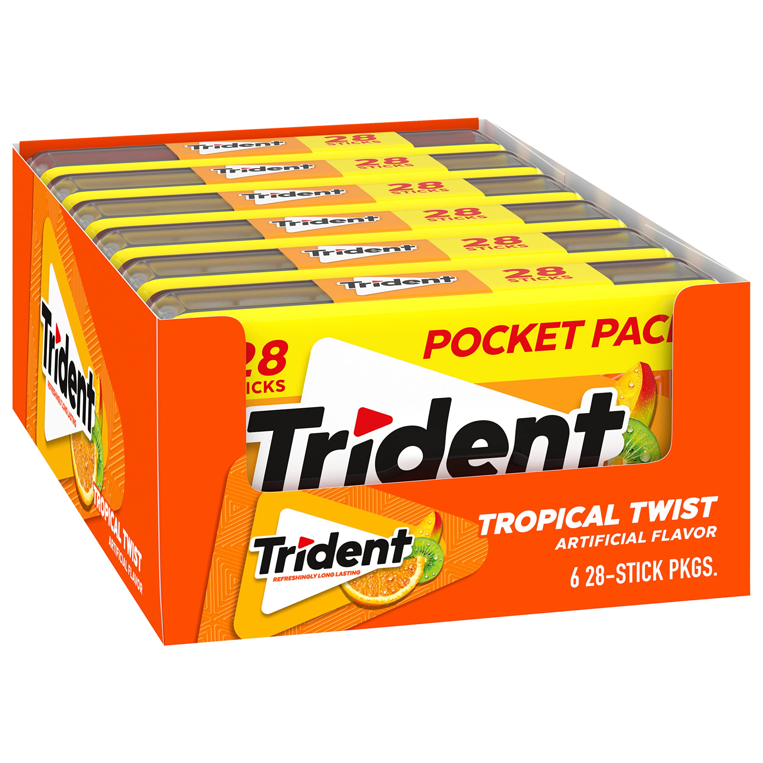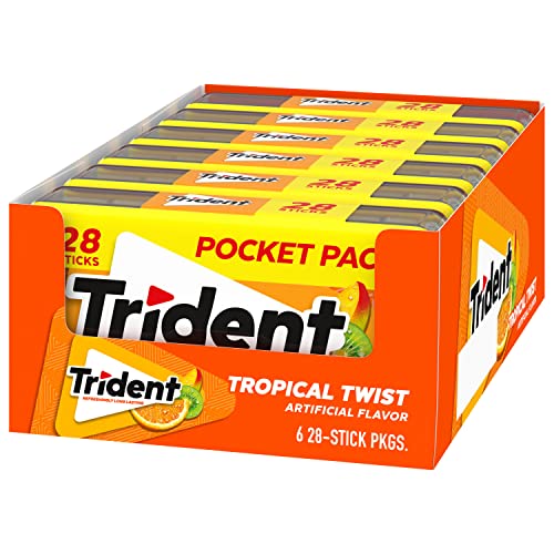 Trident Tropical Twist Sugar Free Gum, 6 Pocket Packs of 28 Pieces (168 Total Pieces)