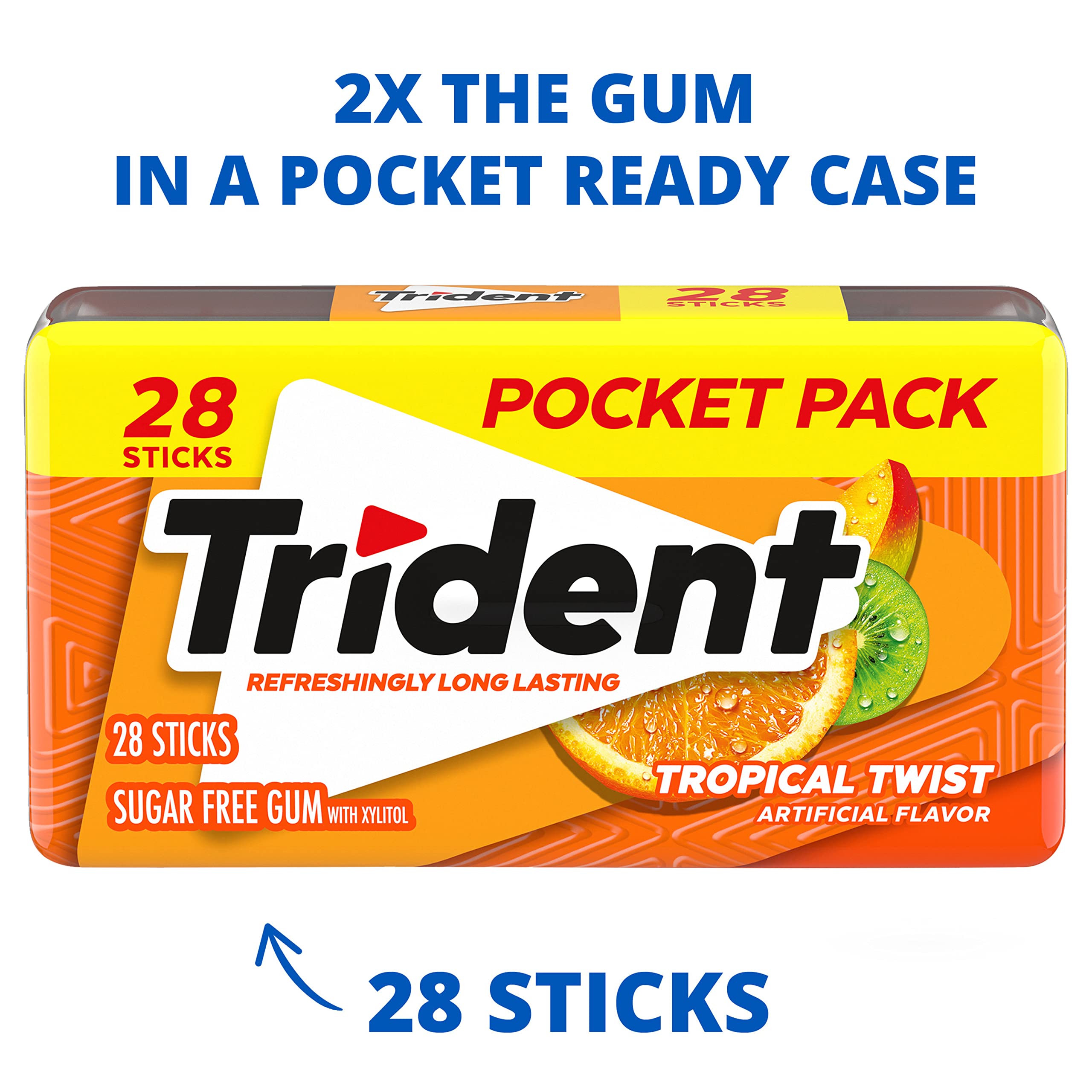 6 Pocket Packs with 28 pieces each, 168 total individually wrapped pieces of Trident Tropical Twist Sugar Free Gum (Double the gum)