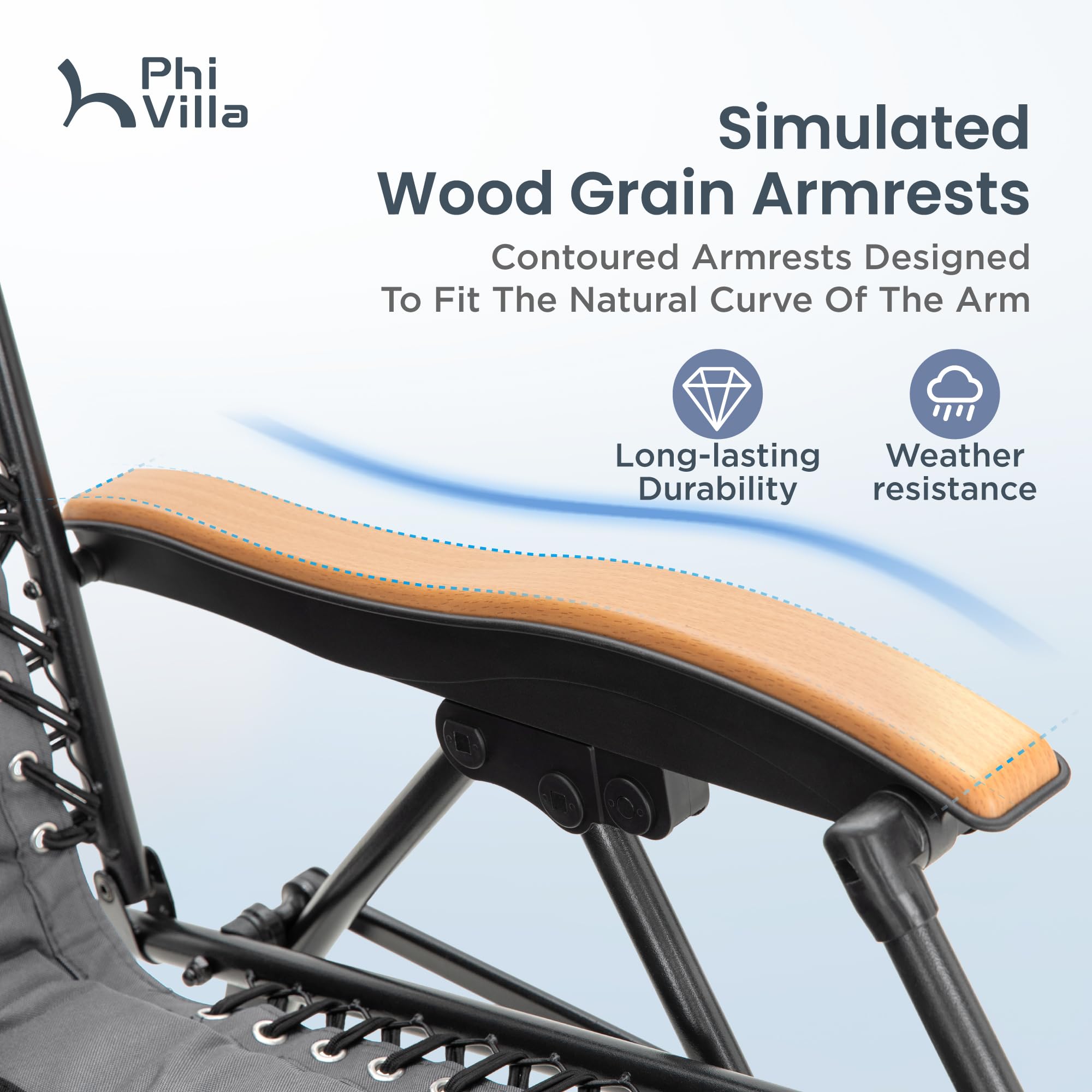 Padded Seat & Back: Fully padded seat suspended by double bungee system provides more comfort and durability. Extra-large wood-like pattern armrest provide more comfort. Cup tray is included for holding drinks or food