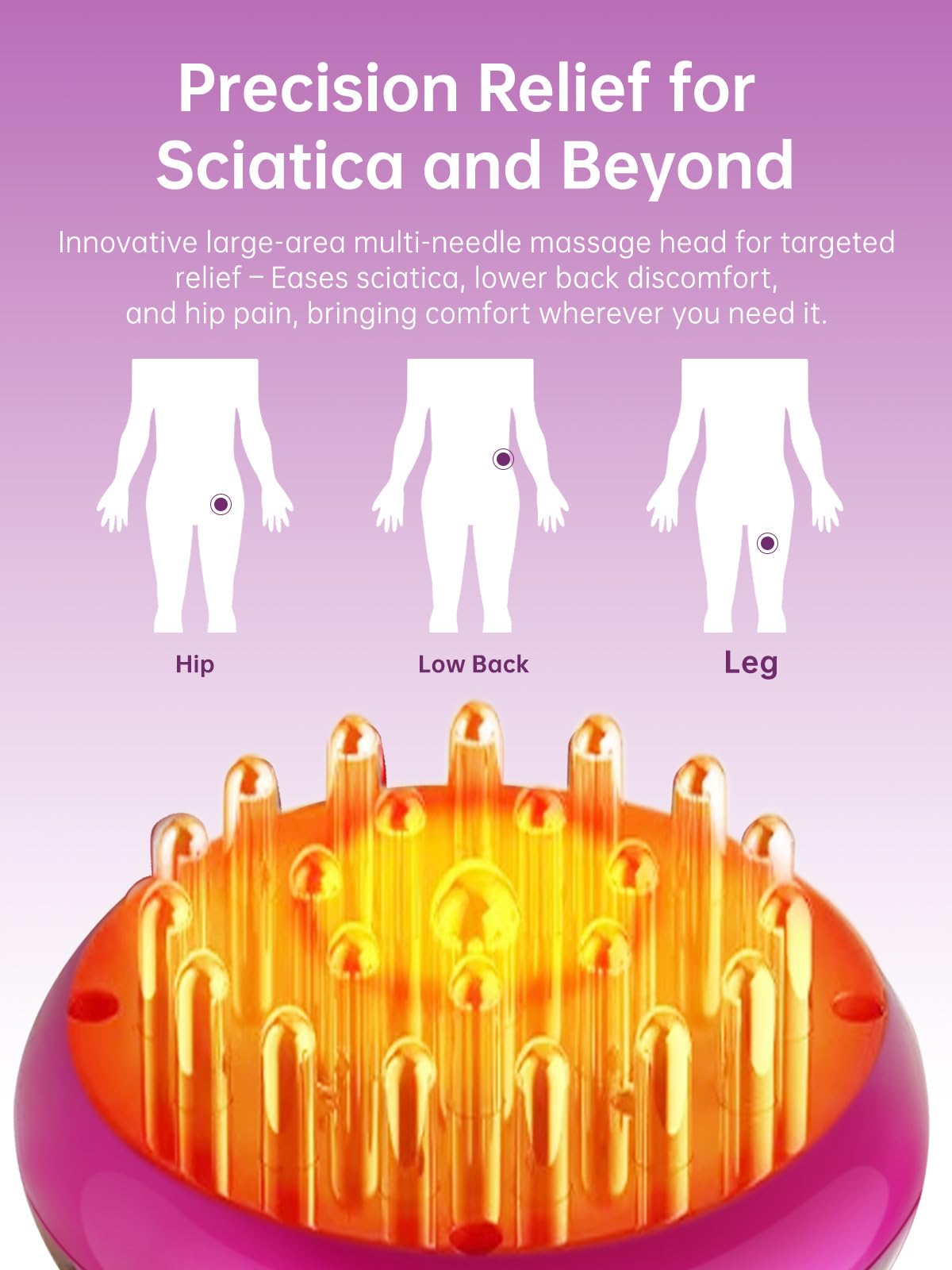 Convenient, Ergonomic, and Portable Design: The sciatica pain relief massager is designed for ease of use at home, in the office, or while traveling. Its compact and ergonomic design provides comfortable handling, and the rechargeable battery ensures multiple uses for sciatica pain relief on the go
