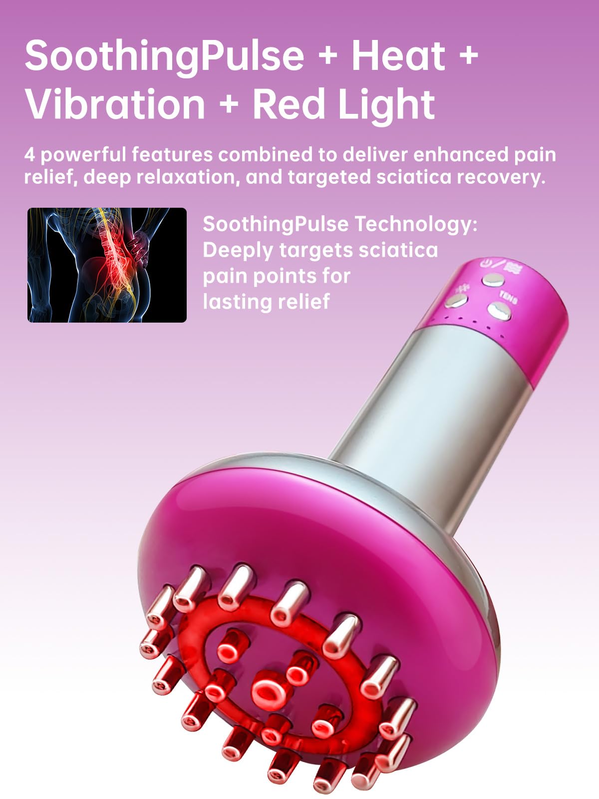 Comprehensive Sciatica Pain Relief: This SoothingPulse massager is a sciatica pain relief device designed to target sciatica, sciatic nerve pain, lower back, and leg pain. Its combination of pulse, heat, vibration, and red light therapy provides deep tissue relief for sciatica pain, helping to reduce inflammation, ease muscle tension, and improve circulation
