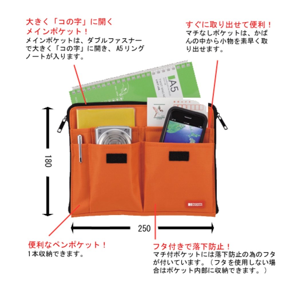 Insert's slim design fits comfortably into larger bags and helps keep contents more organized