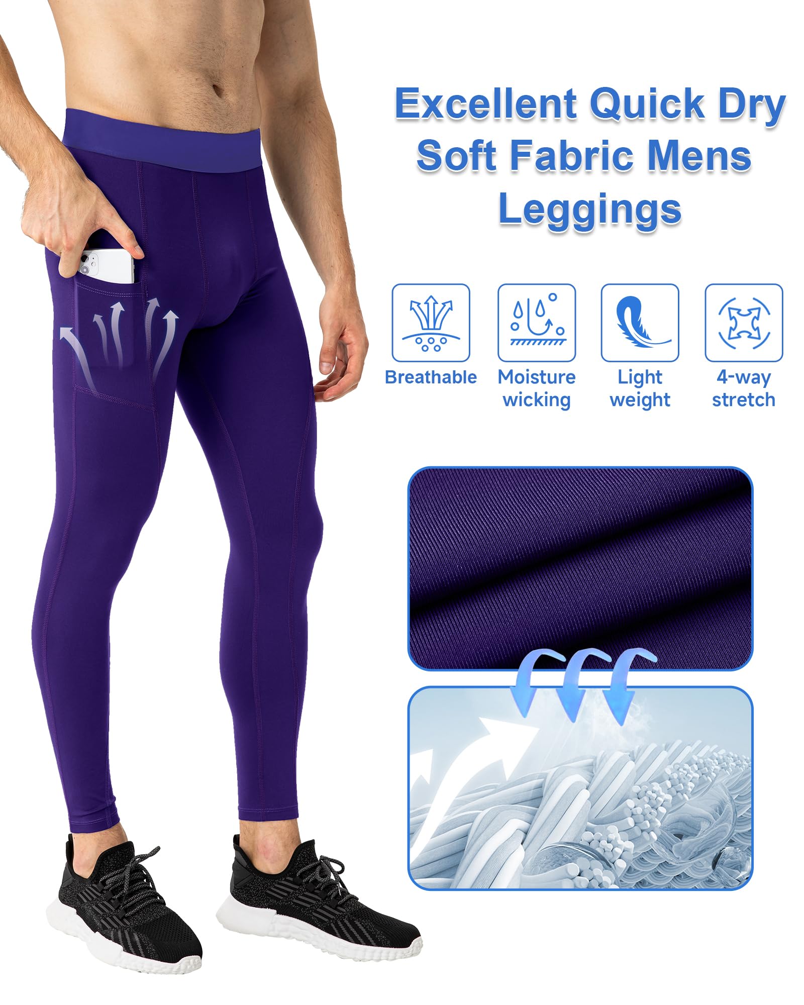ERGONOMIC SUTURE DESIGN: Ergonomic design to make you fell optimal in various activities. Won't deform and fade compression tights, as mild as the second skin. Men's compression baselayer legging with pockets are deep and roomy enough to hold your phone and wallet. Wide waistband stays in place and won't roll down, for optimal coverage