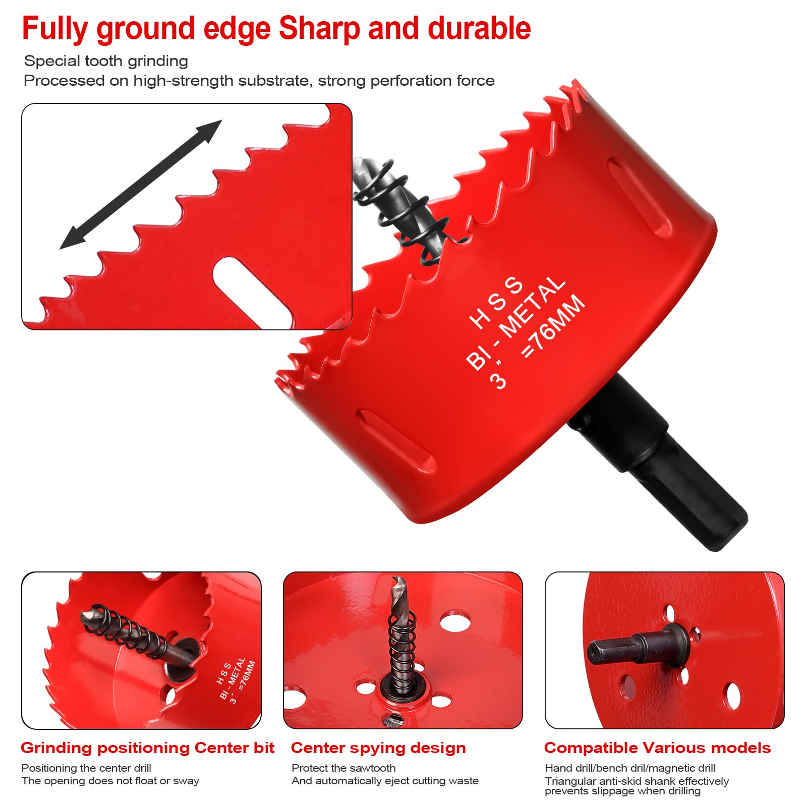 ITOOLFIRM HOLE SAWS for cutting Wood, Ceiling, Vent Pipes and Drywall Features: BI-Metal + High Speed Steel(HSS) Extremely fast sawing with minimal expenditure of force High concentric and side-stroke precision APPLIED TO CUT... Household wood Plywood Galvanized pipe Fire hose Gypsum board PVC boards Holes in Ceiling for lights Holes for vent or fans Holes in table or wall for cable COMPATIBLE DEVICEs Impact Driver Hand Drill Press Bench Drill Press Cordless Drill Precondition: drill chuck is required COMPATIBLE MATERIAL Wood Plastic Fiberglass Aluminum Copper INSTRUCTIONS Pre-drill using light contact pressure. Continue drilling with minimal, even pressure. Avoid oscillating while drilling. Allow hole saw to “air” when using with wood and wood alternatives. The saw comes to a complete stop on your material before pulling it away. DIFFERENCE: Due to manual measurement and production batch is not the same, the size, weight, color will get difference (within 1%) of the normal case. Miss Parts Problem: Each hole saw is coming with a drill bit and shank, if you have revceived a product from our store without the parts, please return or replace your order.