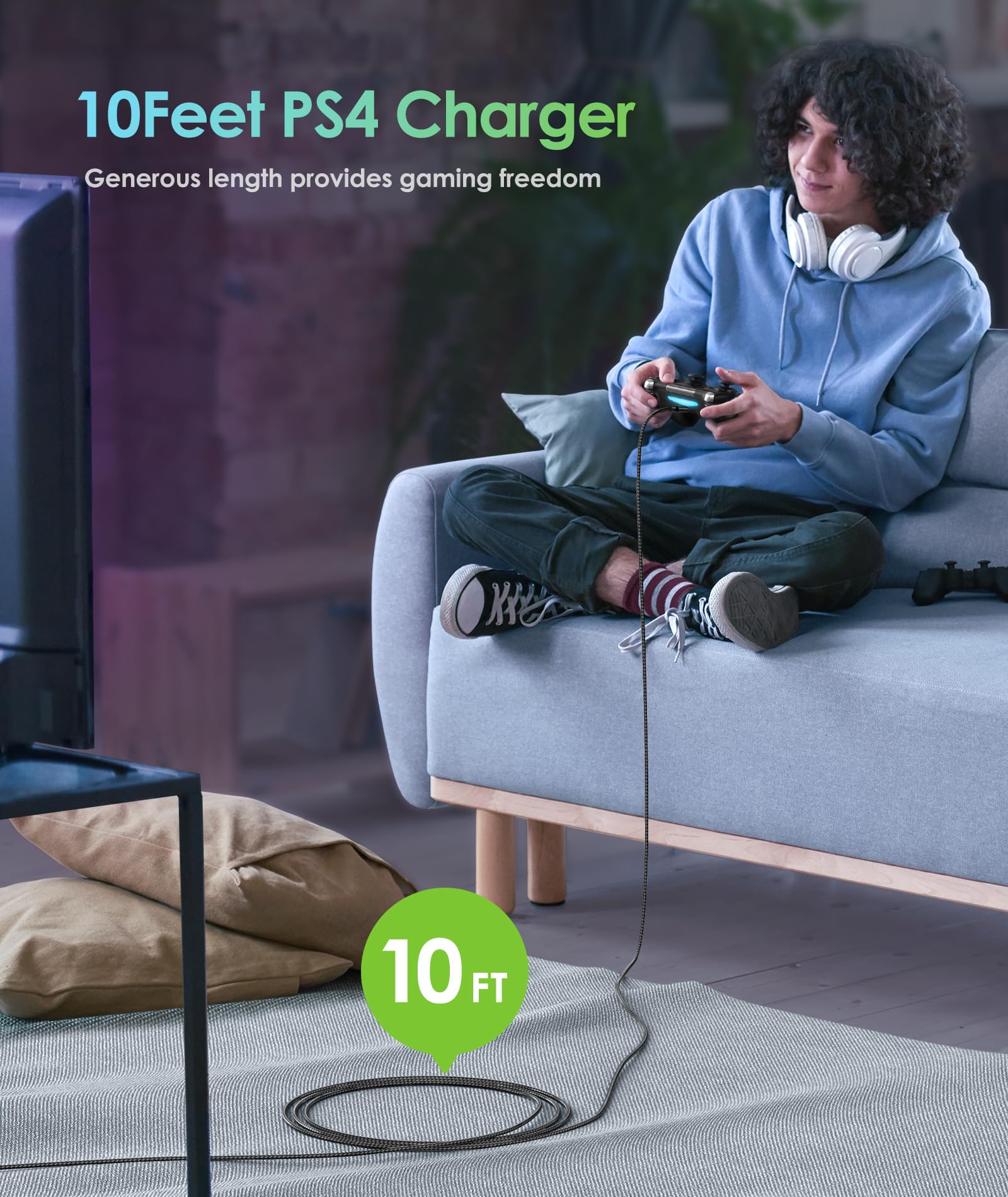 10 FT Extra Long: Enjoy a comfortable gaming experience with our 2-pack of 10ft micro USB charging cables, the extra length specially designed for PS4 controllers, provides sufficient distance from the console