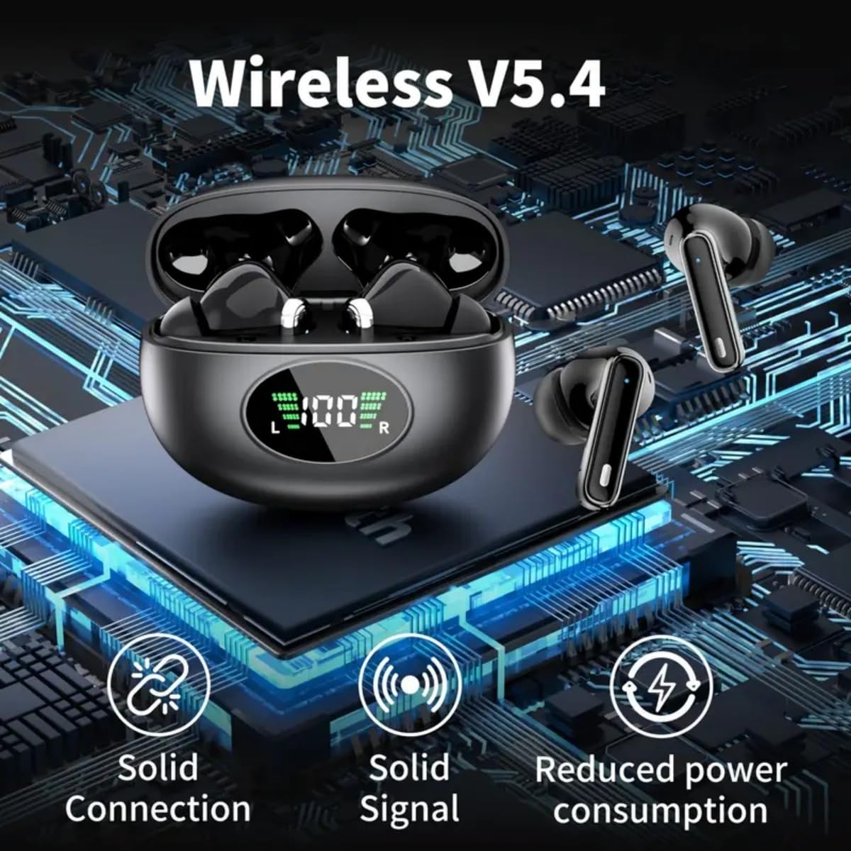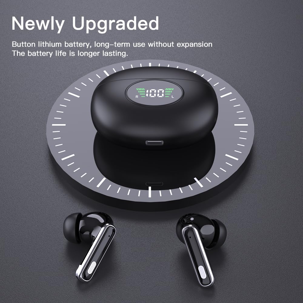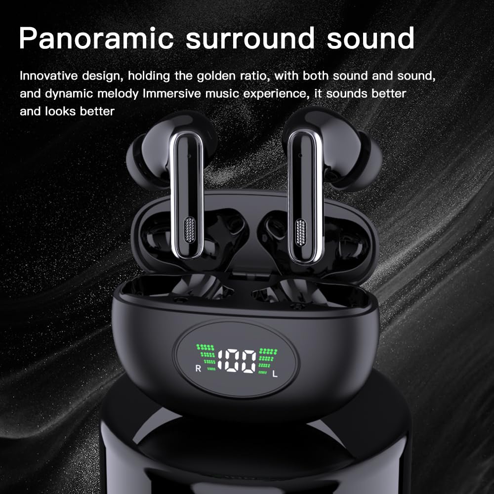 In Ear 5.3Bluetooth Earphones with Digital Display Charging case, 60 Hour Playback time IPX4 Waterproof, Suitable for Fitness, Walking, and Exercise (Black)