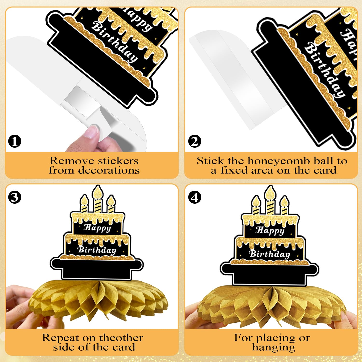 【Effortless Assembly】Just peel off the sticker and stick the honeycomb ball to the card’s fixed area. Quick and easy to set up, these decorations save time and effort, making party prep a breeze for a festive atmosphere with minimal hassle.
