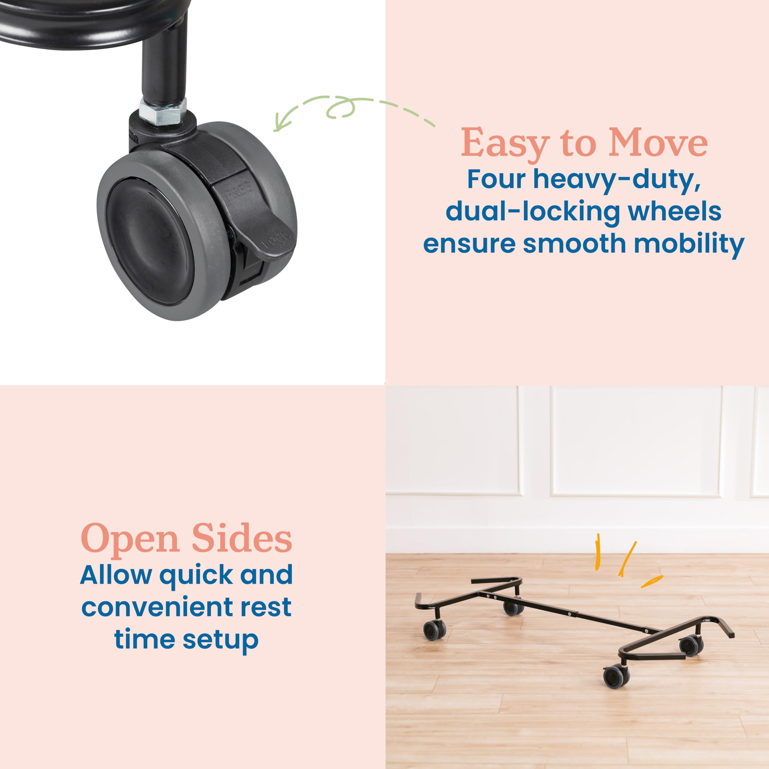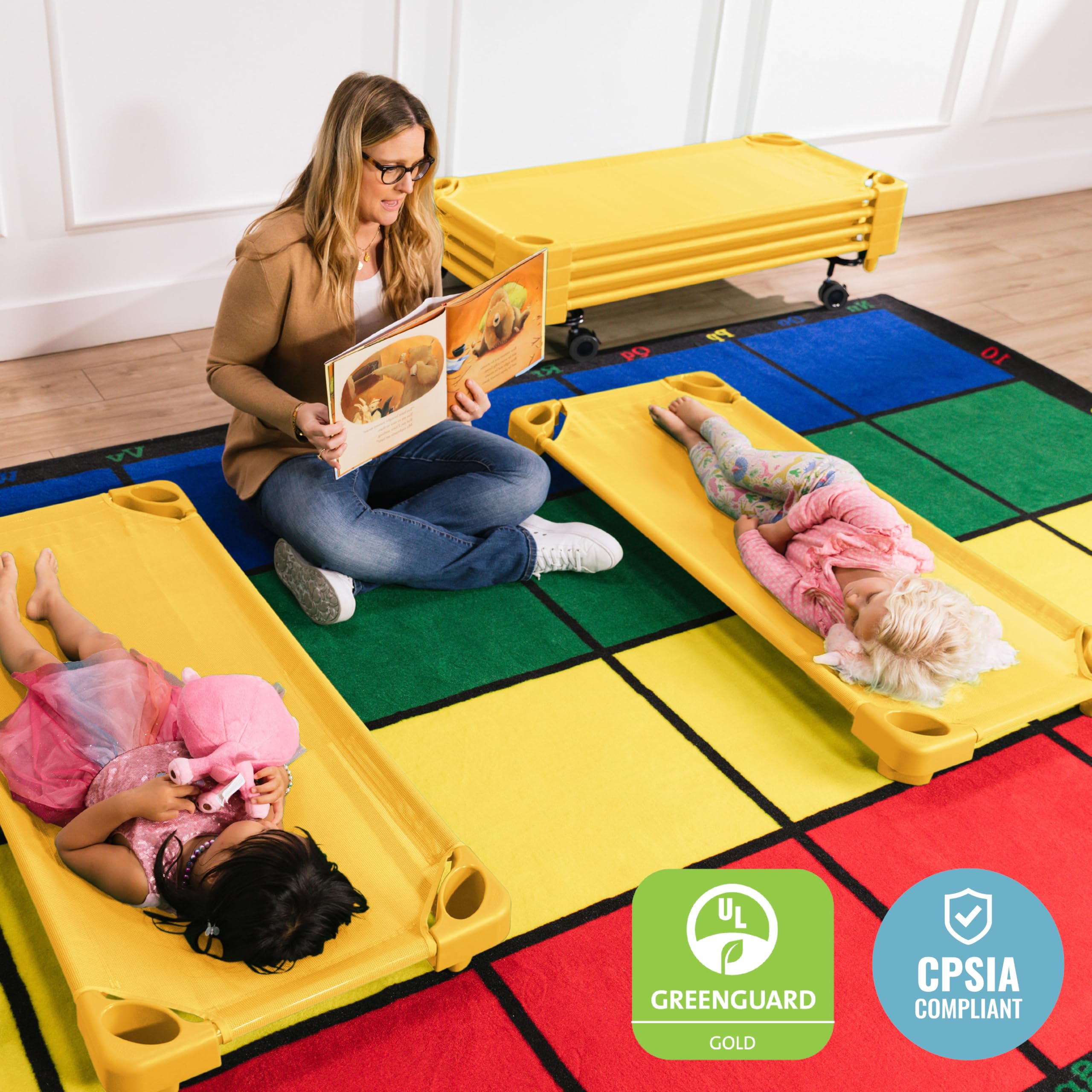 Certified Safe: Universal cot carrier and cots for kids are UL GREENGUARD Gold Certified for low VOCs and feature rounded edges for added safety, daycare cots are CPSIA compliant