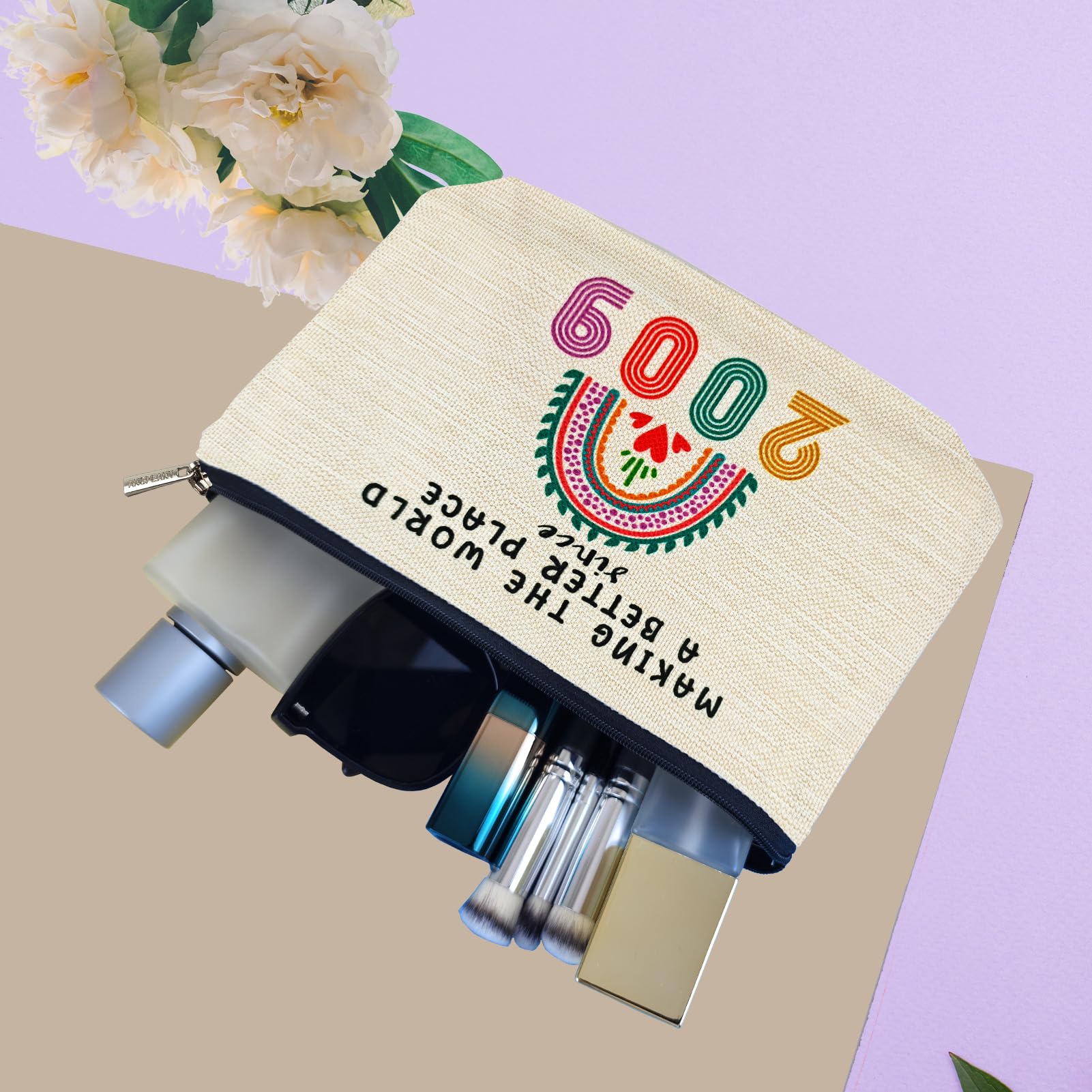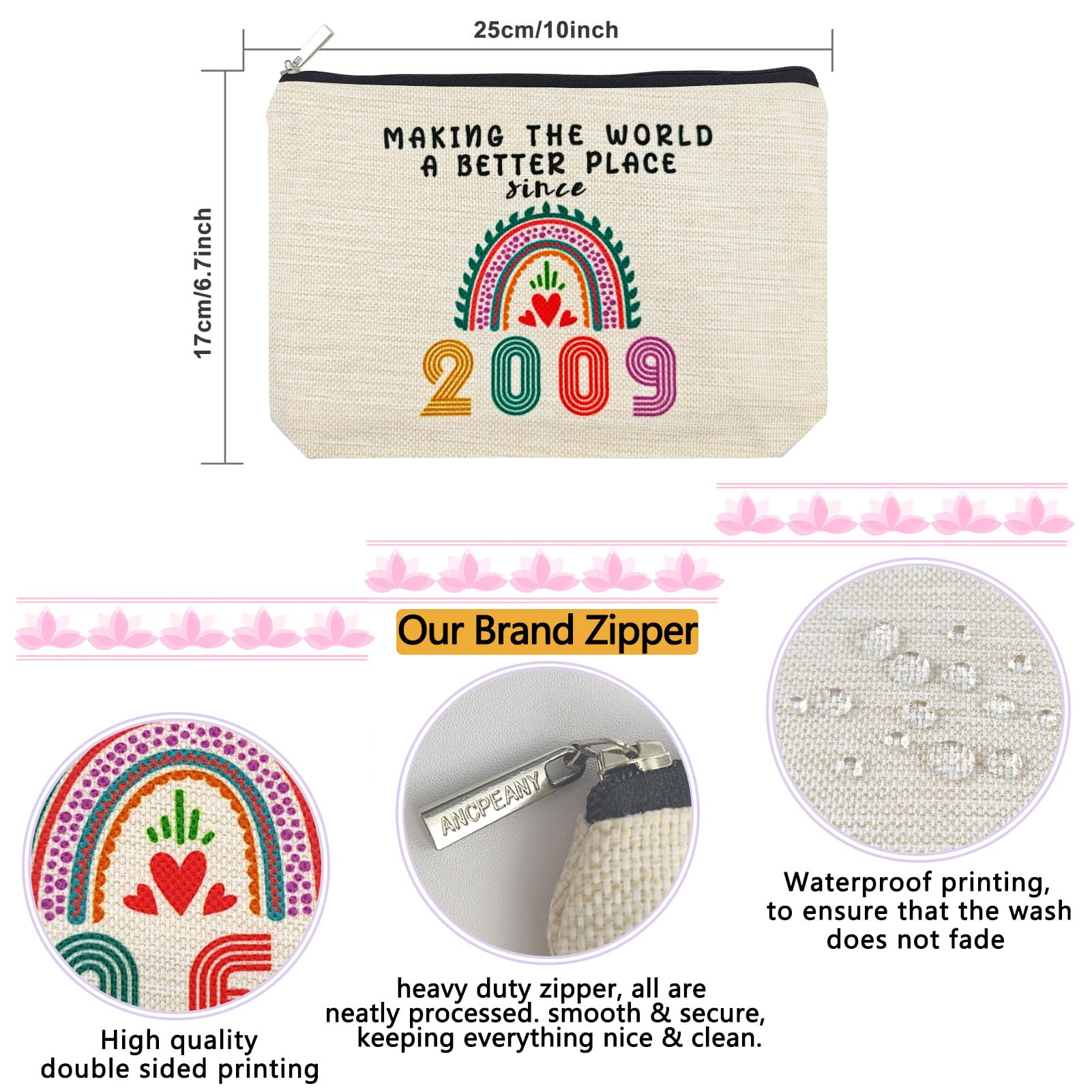 HIGH QUALITY MATERIAL: Double-sided printied.100% Flax, soft, hardy & high quality, the makeup pouch feels very high quality, The background color is stain resistant and waterproof. The sliver zipper is high quality with anti-slip function and flimsy, Our birthday bag is also not easy to fade.