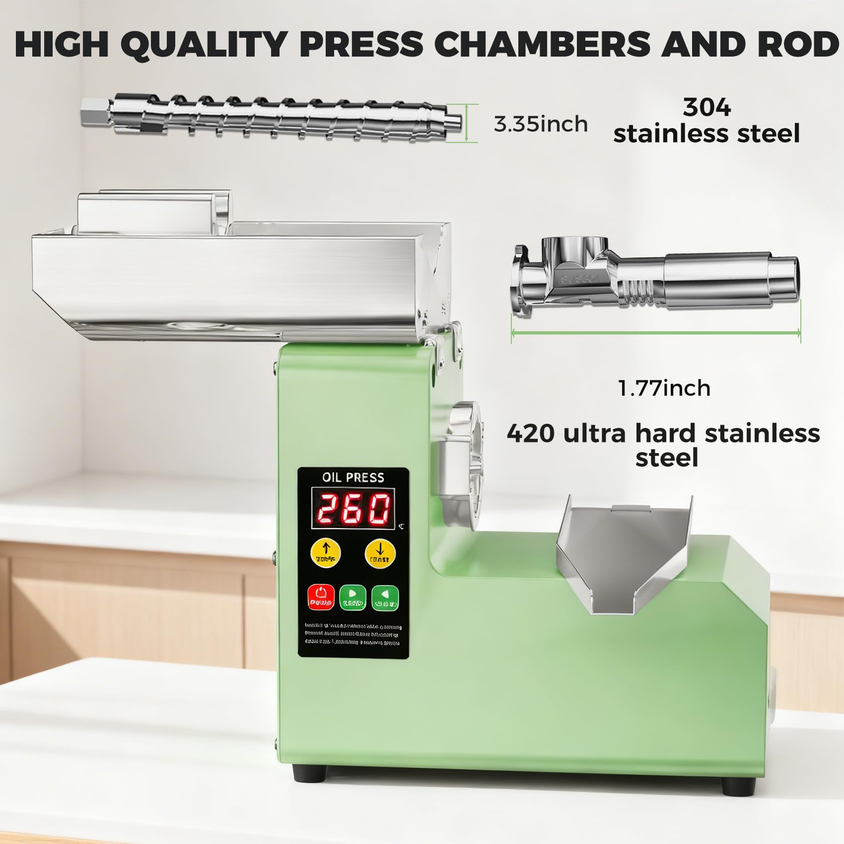 【Multi-Function Cold/Hot Press】Cold pressing preserves the full nutritional value of ingredients, while hot pressing boosts oil yield by 50%, doubling the rich aroma and delivering more flavor with less waste