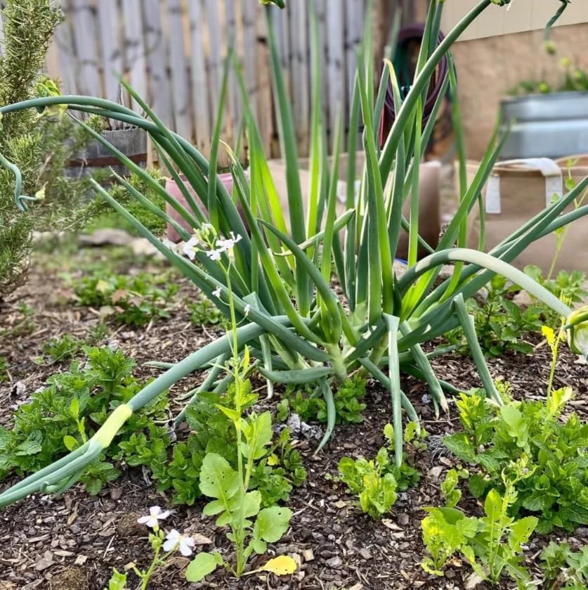 When they reach their full height, they will flower and then a little cluster of bulblets will begin to grow at the top, hence the name, "Top Onions," meaning they are top-setting onions.