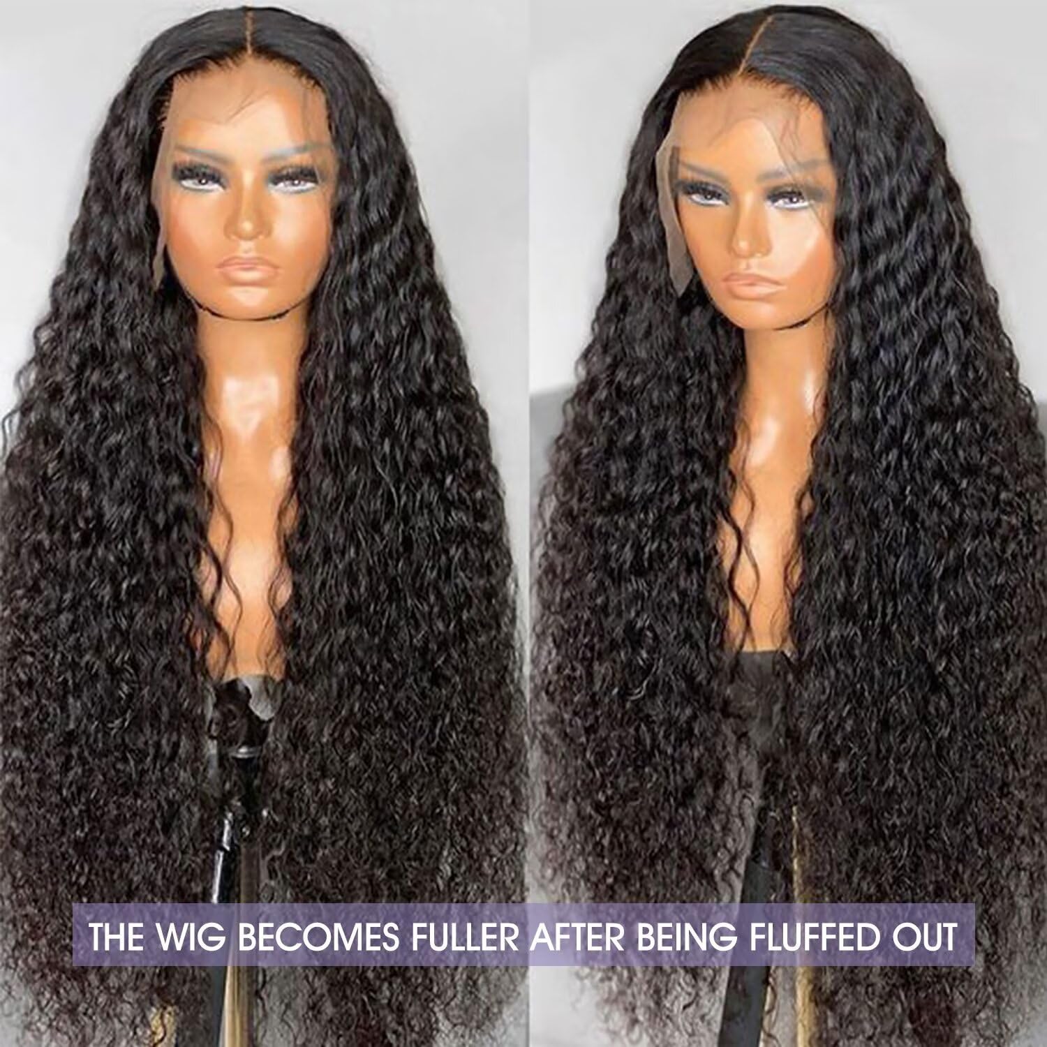 Lemoda Water Wave Lace Wig Cap Material--Glueless wig has a circumference of 22.5CM and an adjustable internal elastic band to fit your size. There are four clips inside the wig to secure it in place, and the forehead area of the wig is made of lace to allow the scalp to breathe and reduce itching and discomfort. The glueless wig is easy to replace and maintain, while also reducing hair damage and shedding. It is durable and long-lasting