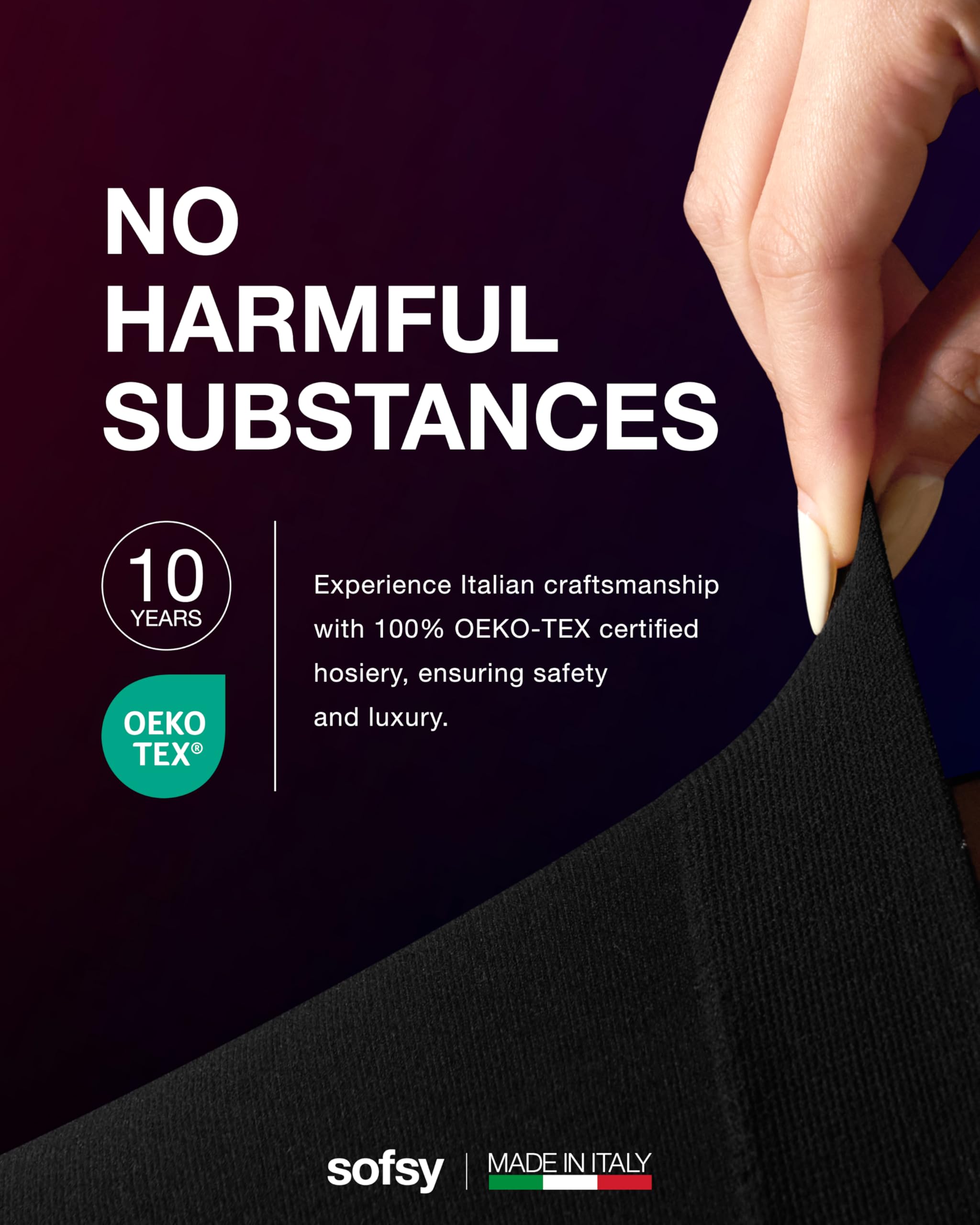 3rd Party Certified Safety: Experience 10 years of Italian hosiery craftsmanship with 100% OEKO-TEX certified tights, ensuring safety and softness. These solid color tights are durable and skin-friendly — designed for those who value quality and comfort.