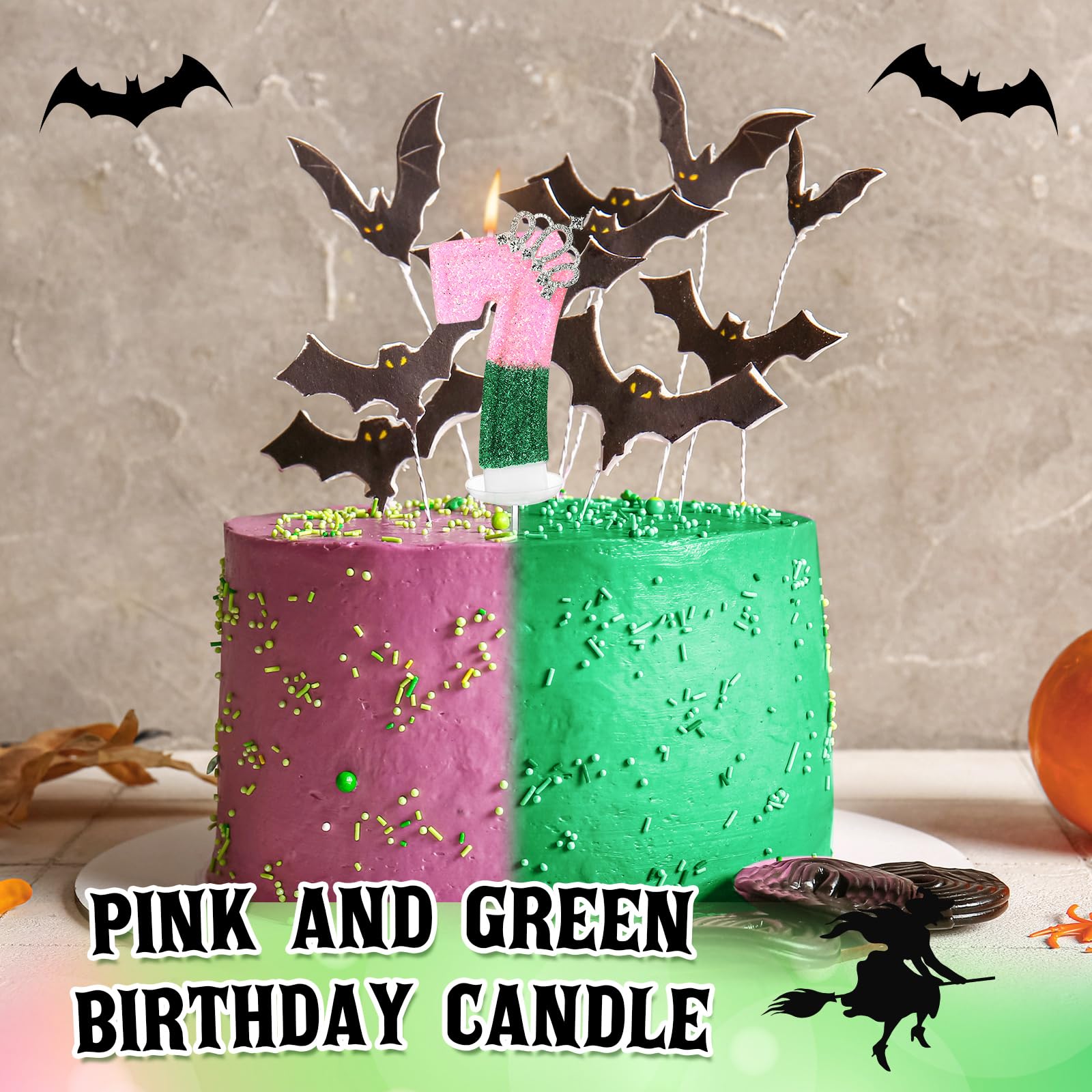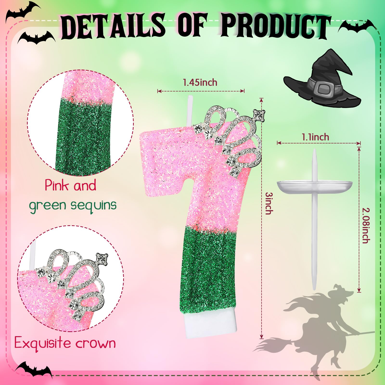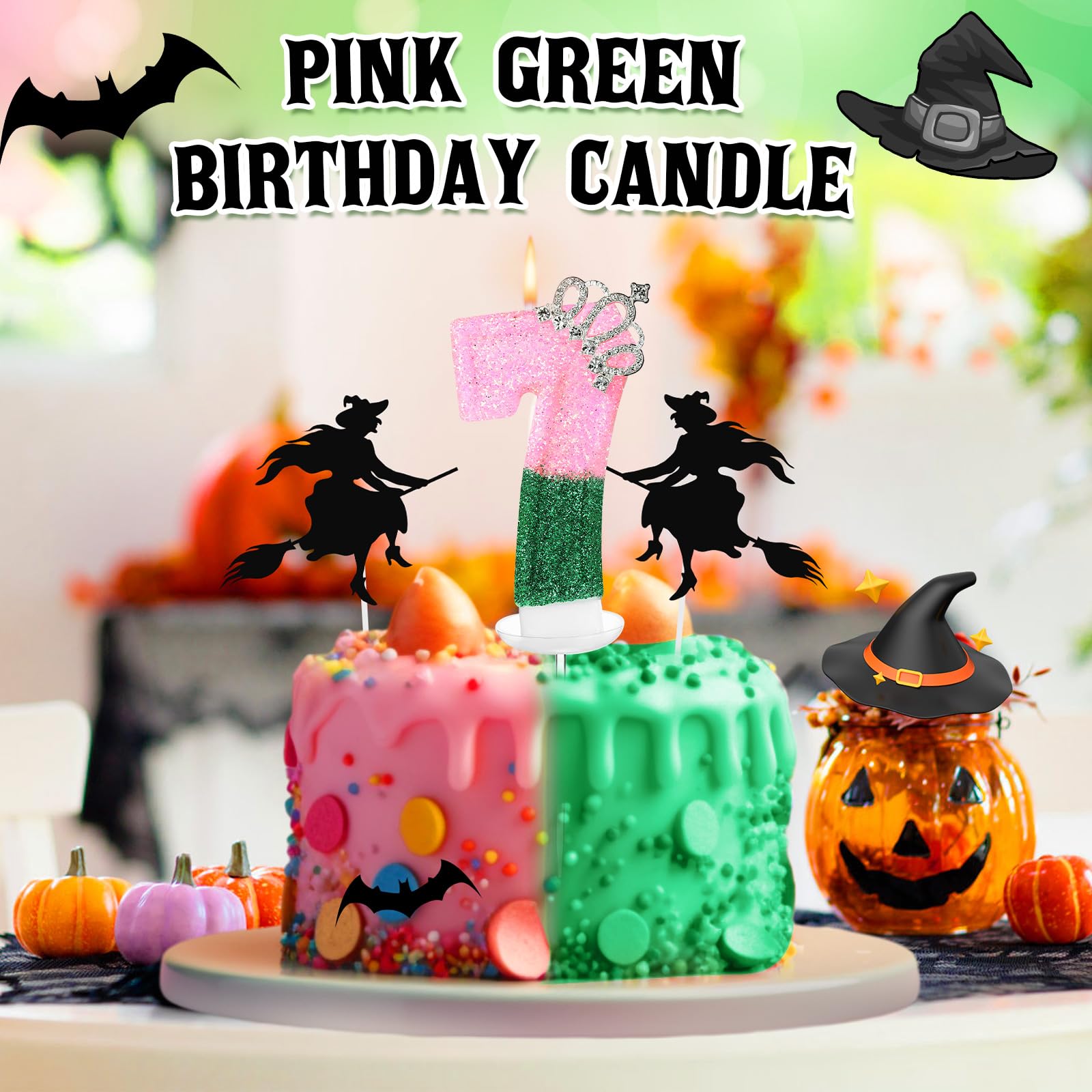 Witch Theme: embellished with a delightful pink green green 7th birthday decor, this pink green candle stands out, adding a cute and eye catching effect to the party decor; The vivid red and green colors provide an adorable decorative touch and enhance the sweet atmosphere of your girl's party