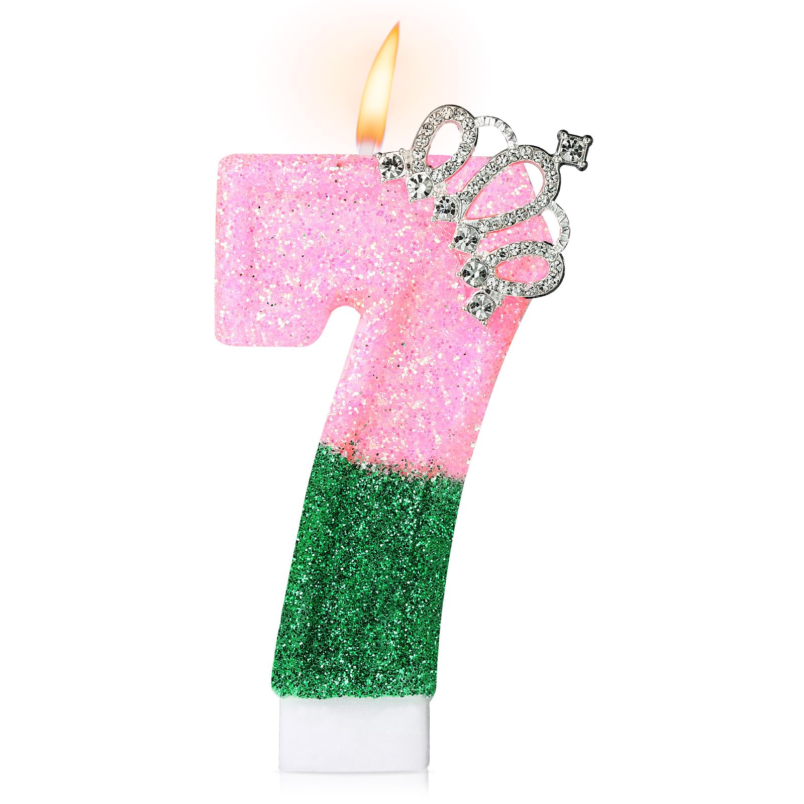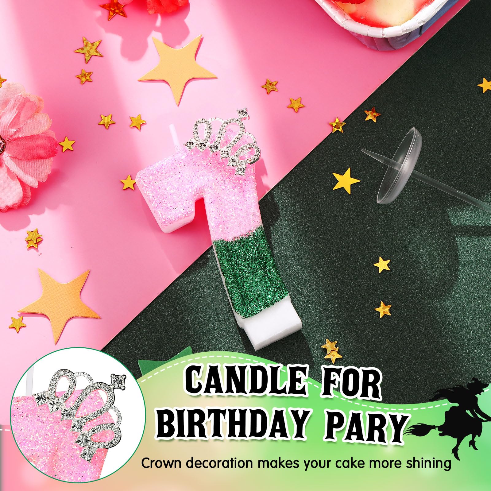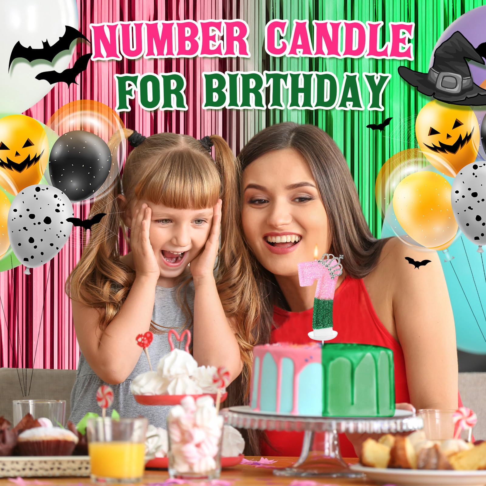 Witch Theme: embellished with a delightful pink green green 7th birthday decor, this pink green candle stands out, adding a cute and eye catching effect to the party decor; The vivid red and green colors provide an adorable decorative touch and enhance the sweet atmosphere of your girl's party