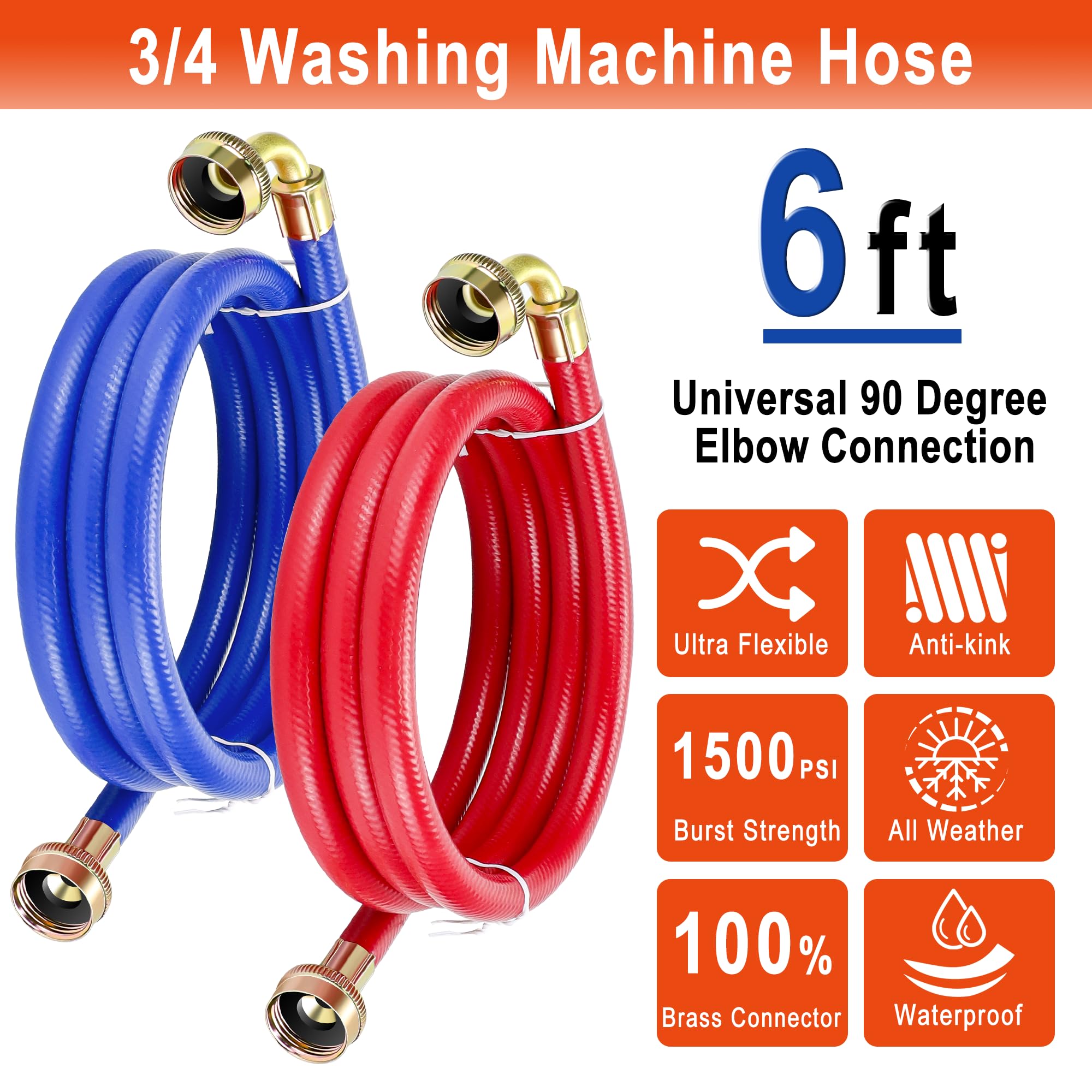 【Universal Inlet Hose】: Our 6 foot laundry hose is made of lead-free material, extra thick rubber gasket, and 100% rubber inner tube, making the hose more resistant to corrosion and long life. Withstands pressures up to 1500 psi and is compatible with most washing machines and other appliances
