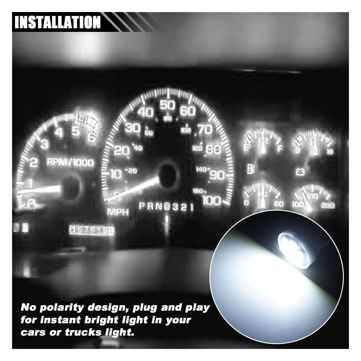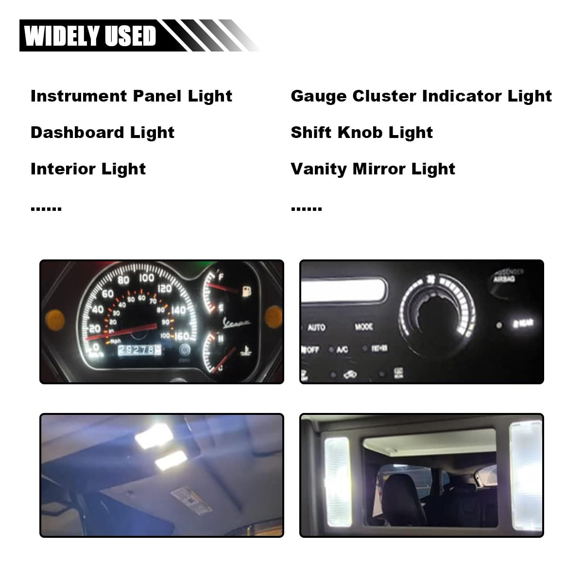 【Widely Compatible】: Compatible with most car models, with the exception of some classic models. The 194 LED bulbs are suitable for dashboard lights, map lights, dome lights, license plate lights, trunk lights, courtesy lights, and more.