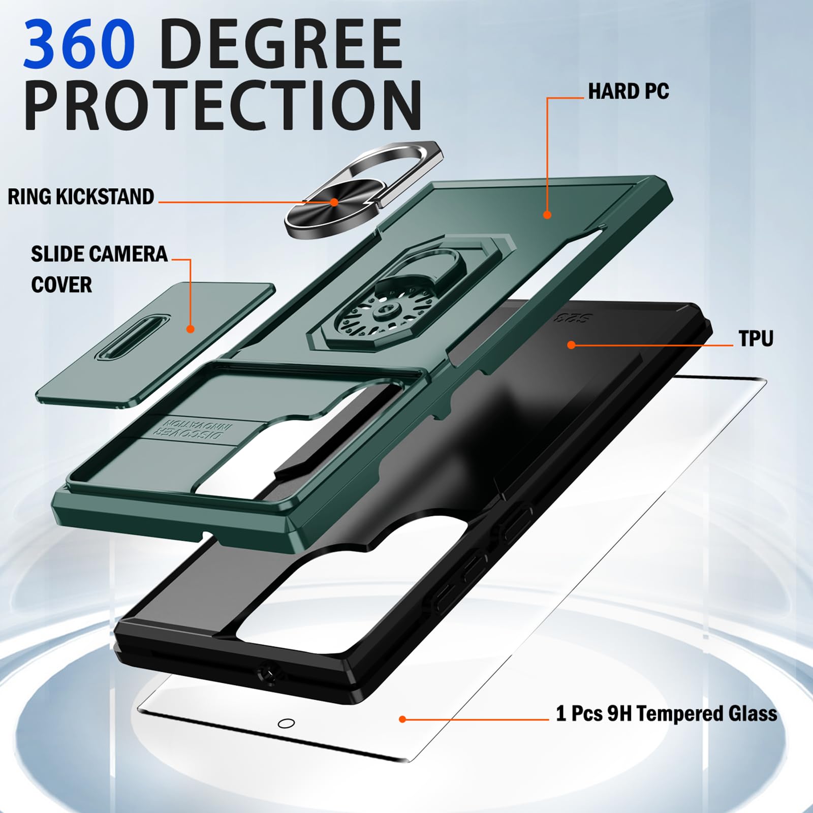 【360° Ring Kickstand】This Samsung Galaxy S25 Ultra Case with built-in 360° foldable ring stand, can firmly hold your phone for horizontal viewing. It can also be attached to a magnetic car mount (Not includes the magnetic car mount holder).