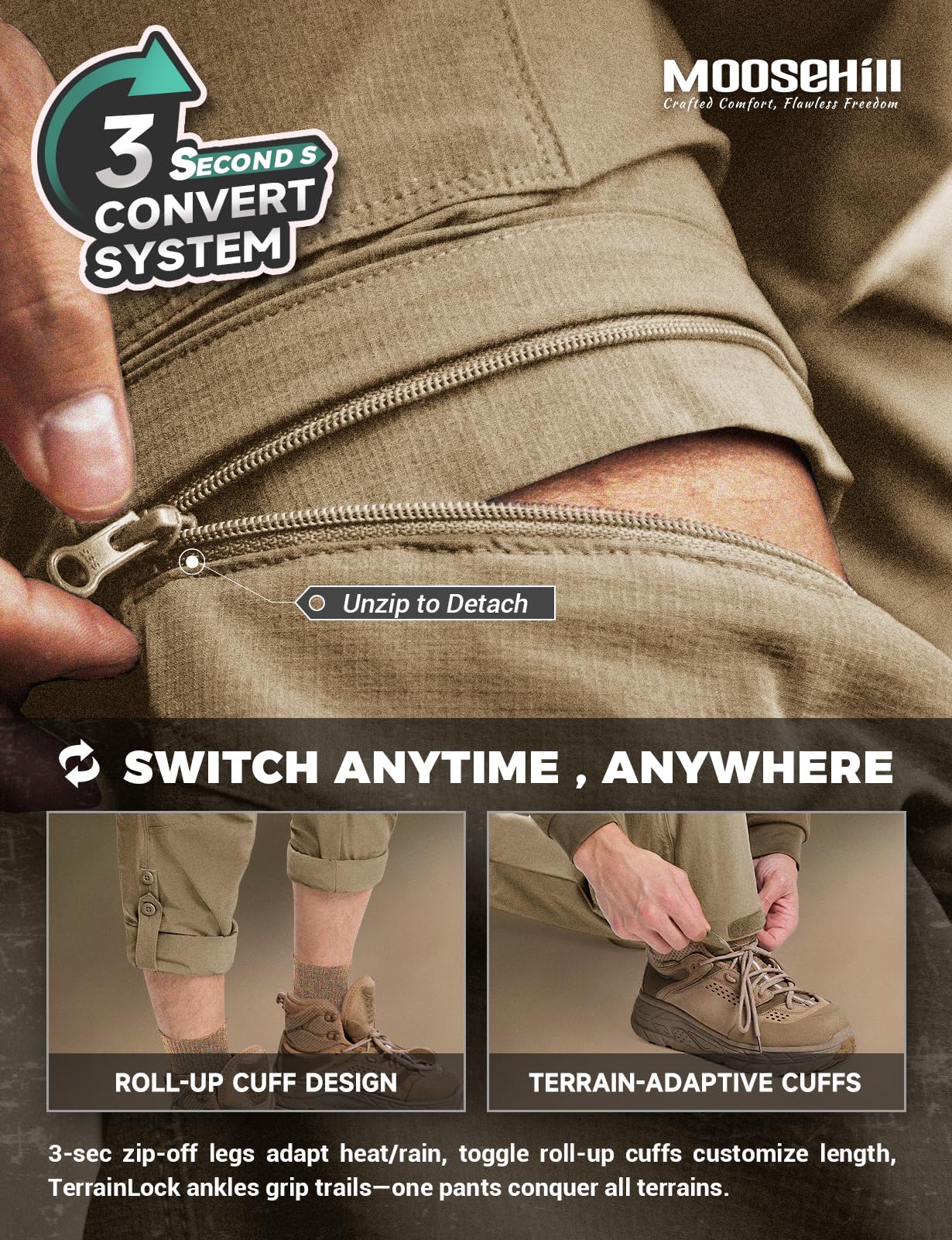 Instant Convertible Convenience: Switch from pants to shorts in seconds! L/R zipper labels eliminate guesswork, while snag-free zippers ensure smooth transitionsβideal for sudden weather changes or trailside breaks.