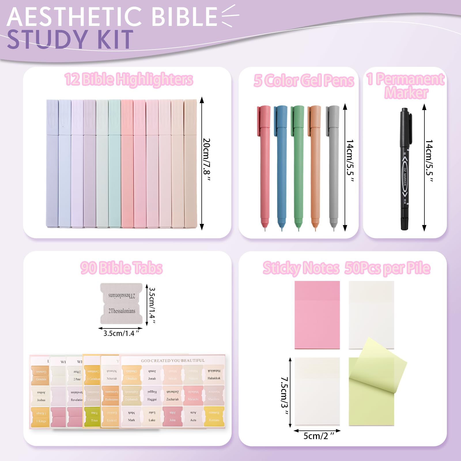 You Will Get: 12 Aesthetic Bible Highlighters, 90 Bible Tabs, 5 Multi-color Gel Pens, 1 Permanent Marker, 2 Transparent Sticky Notes, 2 Colourful Sticky Notes, 4 "JESUS love you" Bookmark, 1 Bible First Aid Card