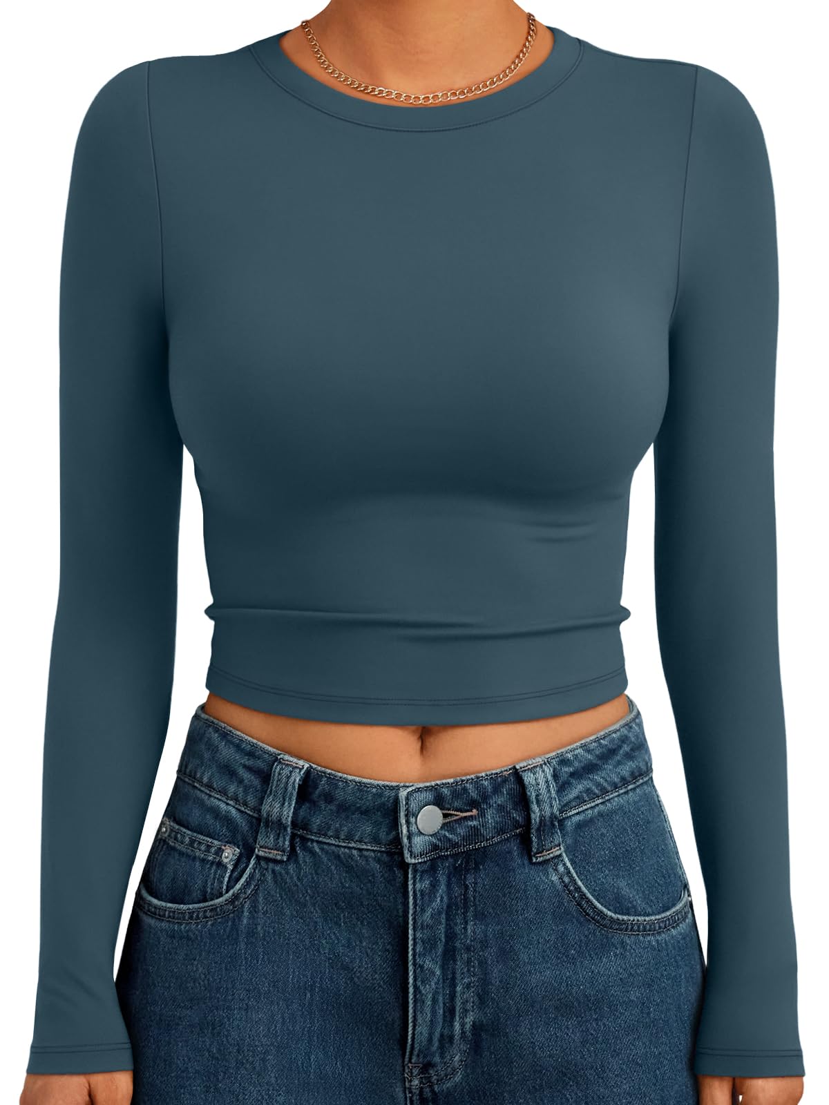 Y2k Design: Cropped and regular style,you can wear it regularly or fold it up like a crop top.cute,slim fitted,casual style,scoop neck,long sleeve shirts.