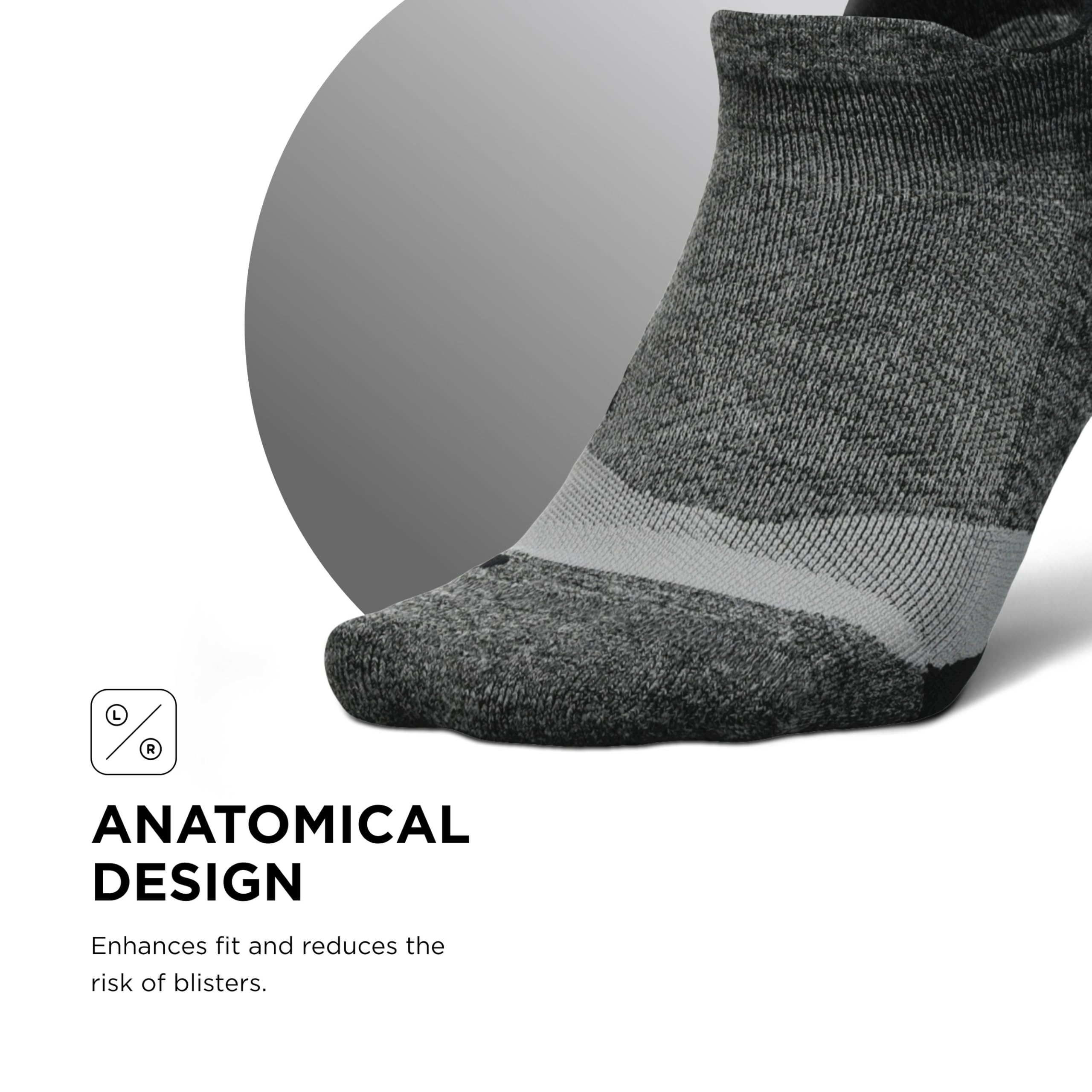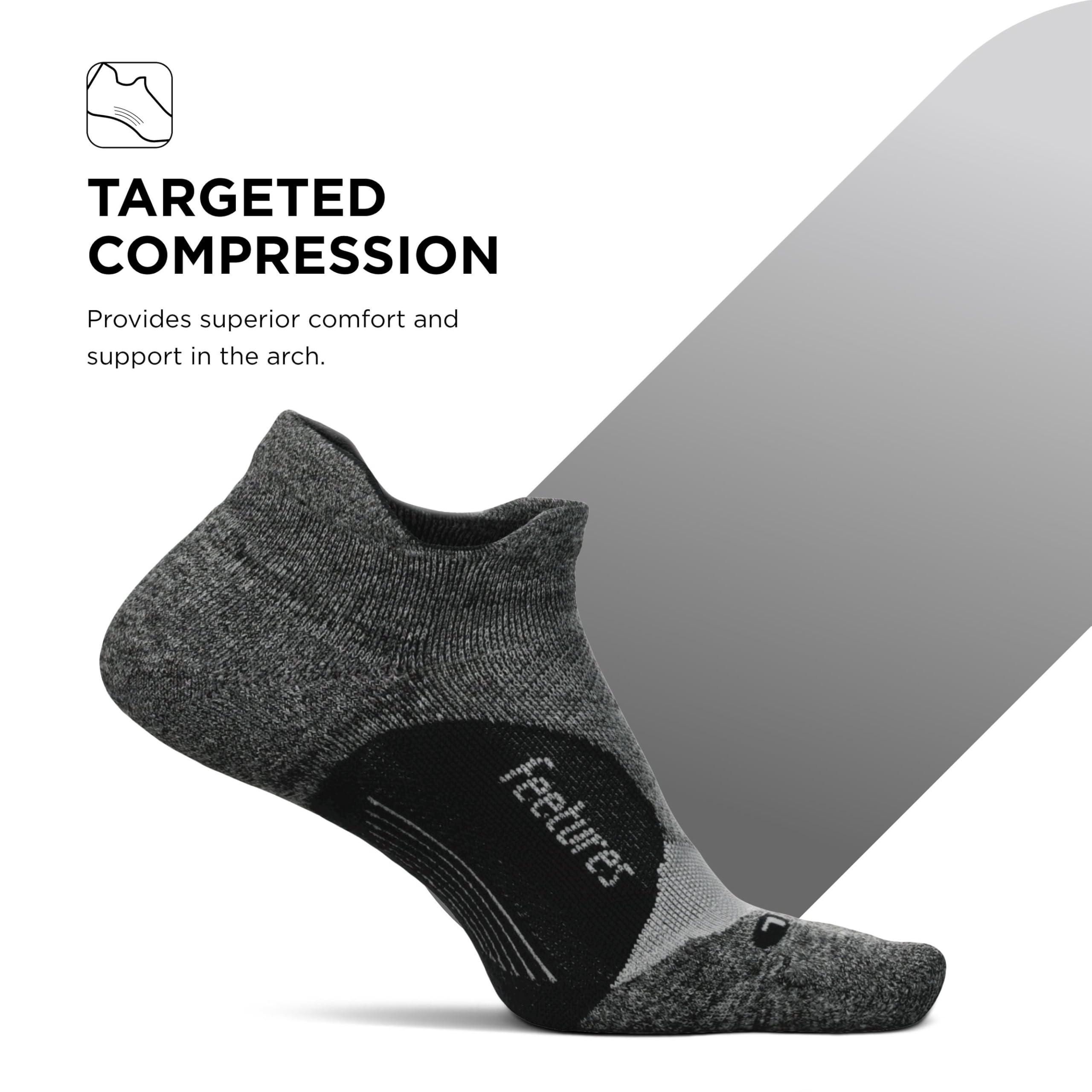 Sports Sock: These Feetures socks are engineered with Targeted Compression and anatomical design that conform to the left and right structure of the foot providing a custom-like fit and reduced risk of blisters