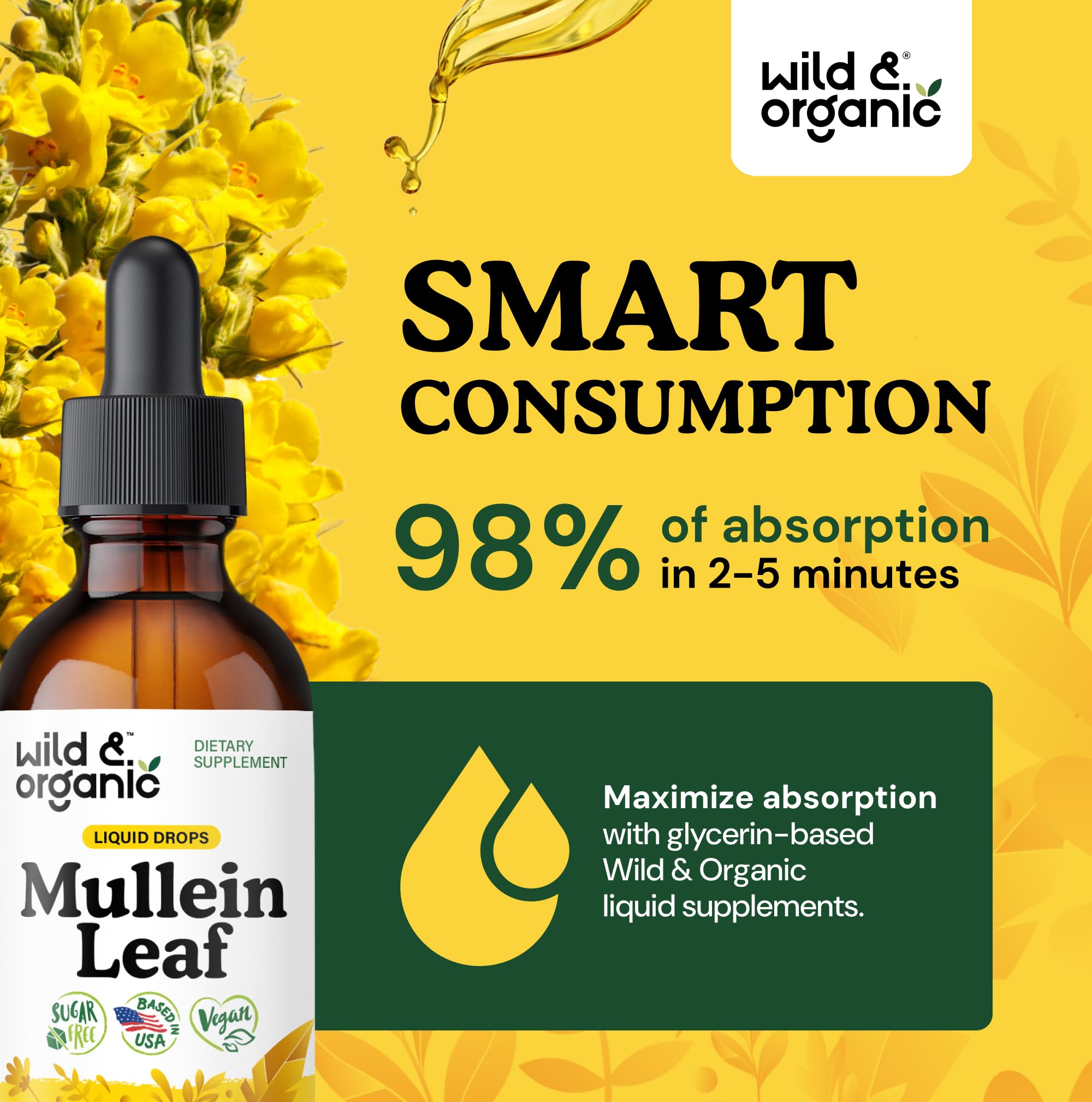 Sweetness Without Sugar: Enjoy a pleasant supplement experience with Wild & Organic mullein extract for lungs, which features a naturally sweet taste. Our mullein drops use glycerin for natural sweetness, with no added sugar.
