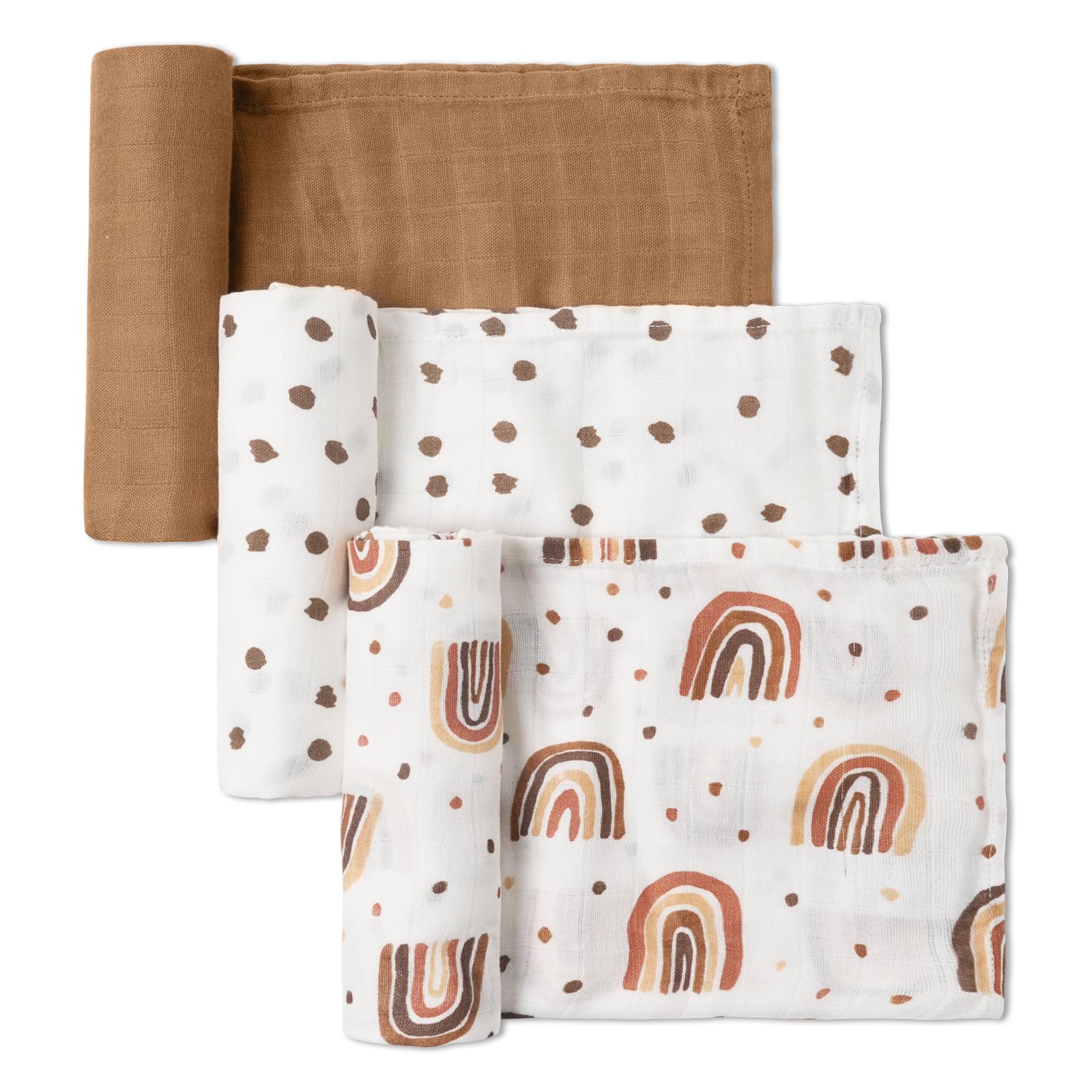Four Seasons General & Versatile: Due to their practical size (70 x 70 cm, three-pack), these baby blankets can be used for a variety of purposes, such as a receiving blanket, cuddle blanket, nursing cover, sunscreen for strollers, burp cloth, car seat cover, play mat, changing pad, mini crib sheet, cleaning the face, catching spit-up, sunshade cover, picnic pad, or tummy time blanket. Fast-drying and ready for the next use, they provide even more day-to-day versatility for parents