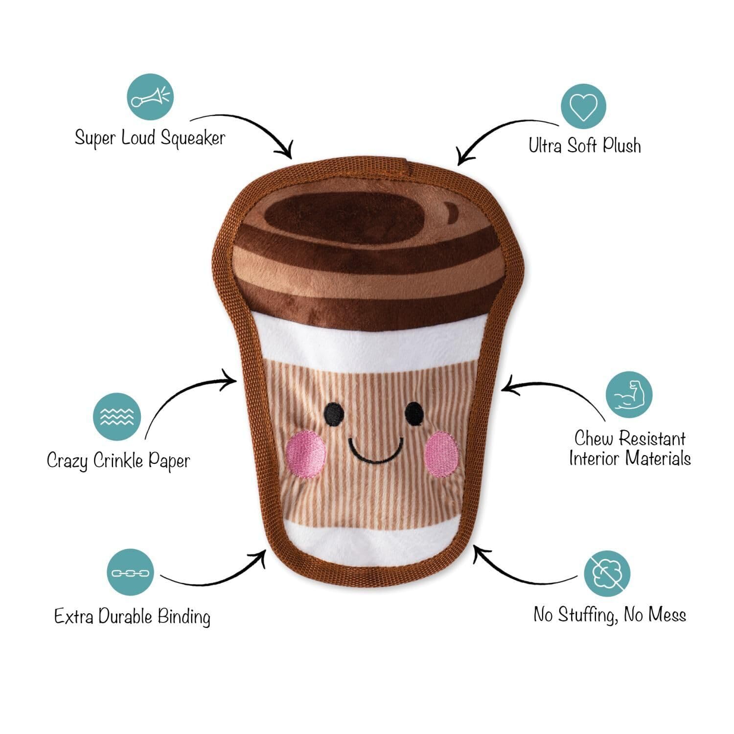 Toy features an extra loud squeaker and crinkle paper
