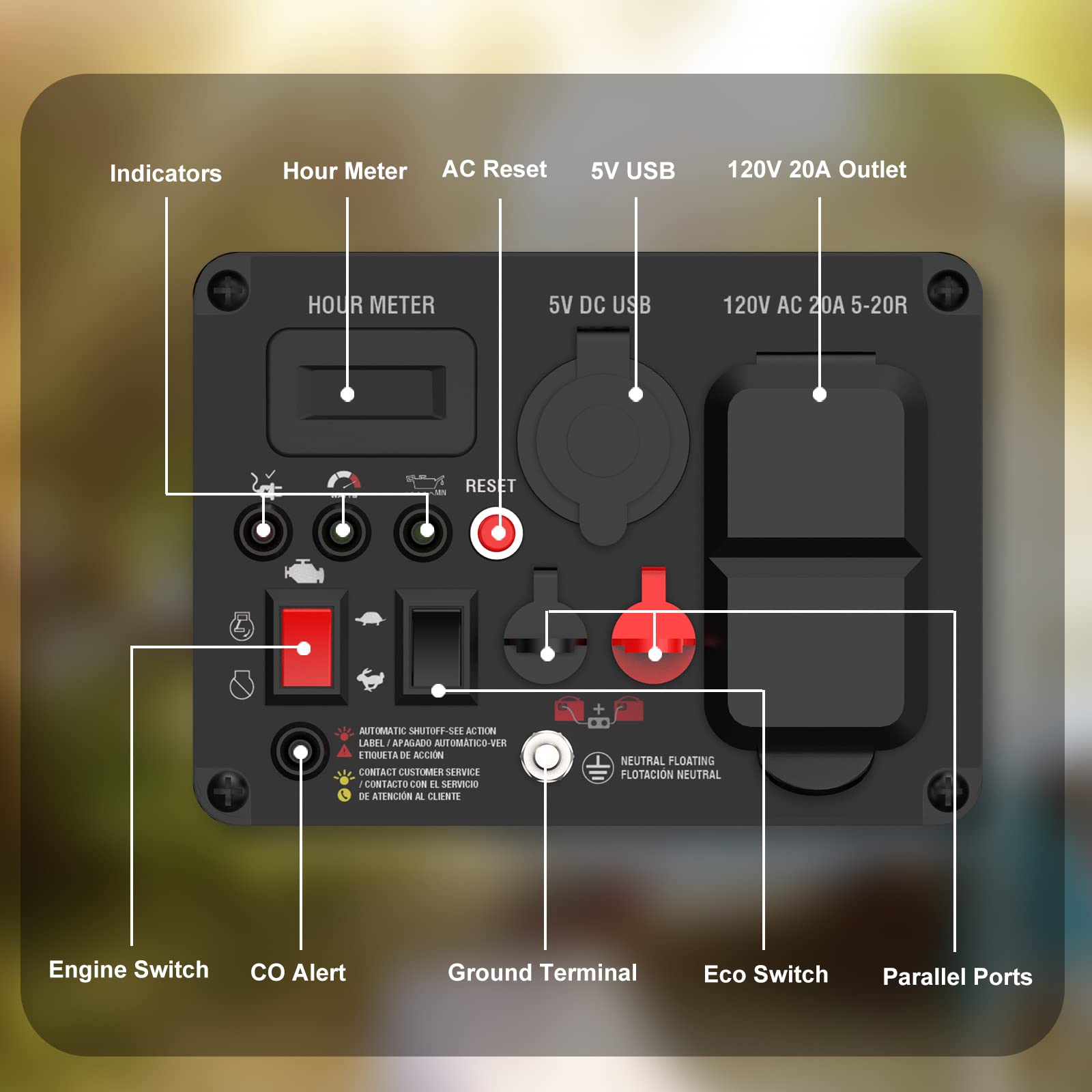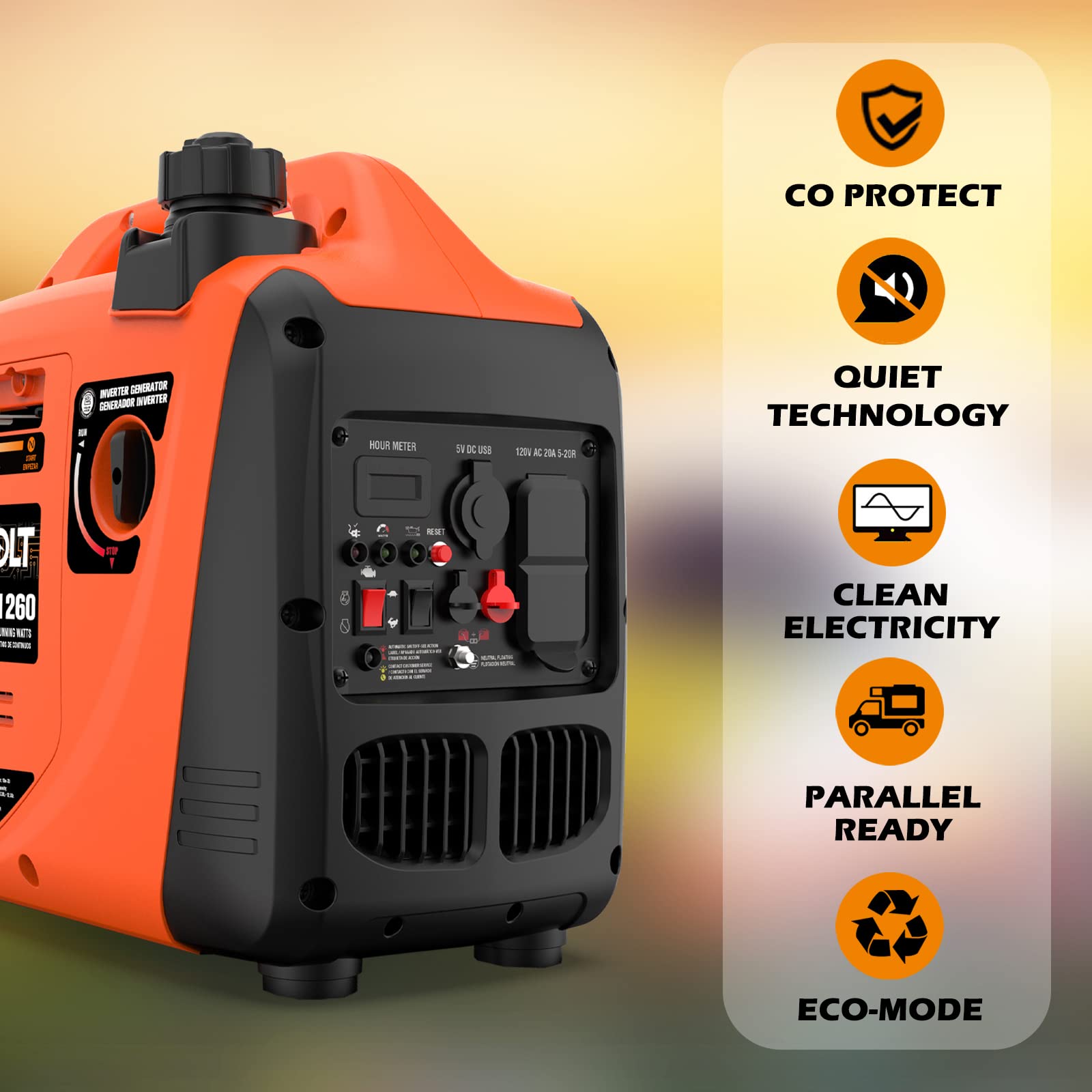 🛡️ CO Protect & Comprehensive Safety - This gas powered generator features built-in CO Alert tech that auto-shuts down when unsafe CO levels are detected, protecting your family. Low oil auto-shutdown and overload protection also safeguard both the generator and your electronics - make it a safe for home or RV use, no safety worries