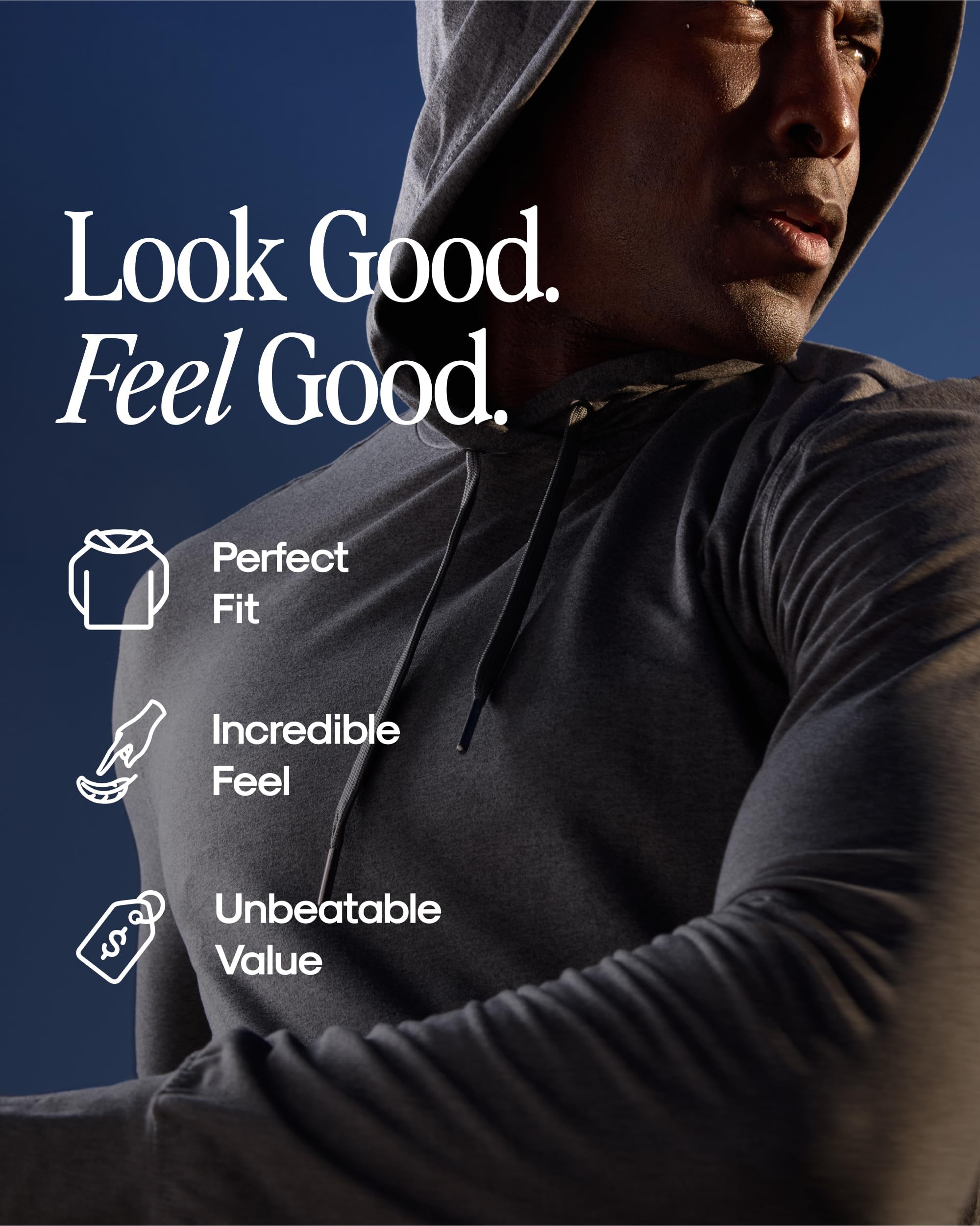 Description Built for comfort, made to move, and styled to fit—True Classic hoodies deliver the “fits perfect” feel customers call out. This collection of hoodies for men includes our performance Active Hoodie, a classic pullover hoodie, and a cozy zip-up sweatshirt. The Active Hoodie uses a smooth 96/4 performance blend that wicks moisture, dries fast, helps control odor, and adds UPF 30 sun protection (white rated UPF 15), so your hoodie stays comfortable during training, travel, or anytime you’re on the go. Prefer plush? Our French-terry pullover and zip-up mens hoodies are brushed inside and out for a soft, warm hand feel—easy to layer, easy to live in. Each hoodie features an athletic fit that’s true to size and designed to move with you without feeling baggy or tight. Clean details—tagless labels, side seams that hold shape, durable stitching, and functional pockets—make these men’s fashion hoodies & sweatshirts simple to style Monday through Sunday. Available in S–3XL and go-with-everything colors like plain black hoodie, navy/dark blue hoodie men need, carbon/charcoal heather grey hoodies men love, and military green mens hoodie (varies by style). Wash cold and dry low; expect minimal shrinkage so your favorite fit stays the favorite. Choose your True Classic hoodie, pull it on, and head out feeling comfortable, covered, and ready for whatever’s next.