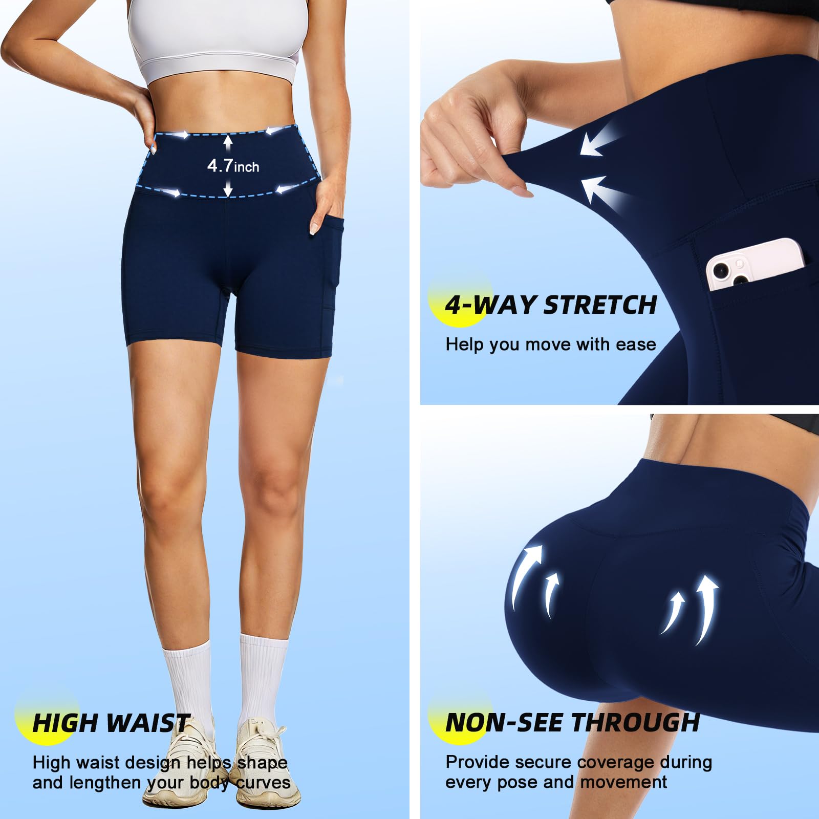 4 WAYS STRETCH & NON-SEE-THROUGH - This workout spandex shorts for women is made of 4 way stretch and non see through fabric, which provides maximum comfort and protection during your every pose and movement, allows for maximum comfort and wear ability