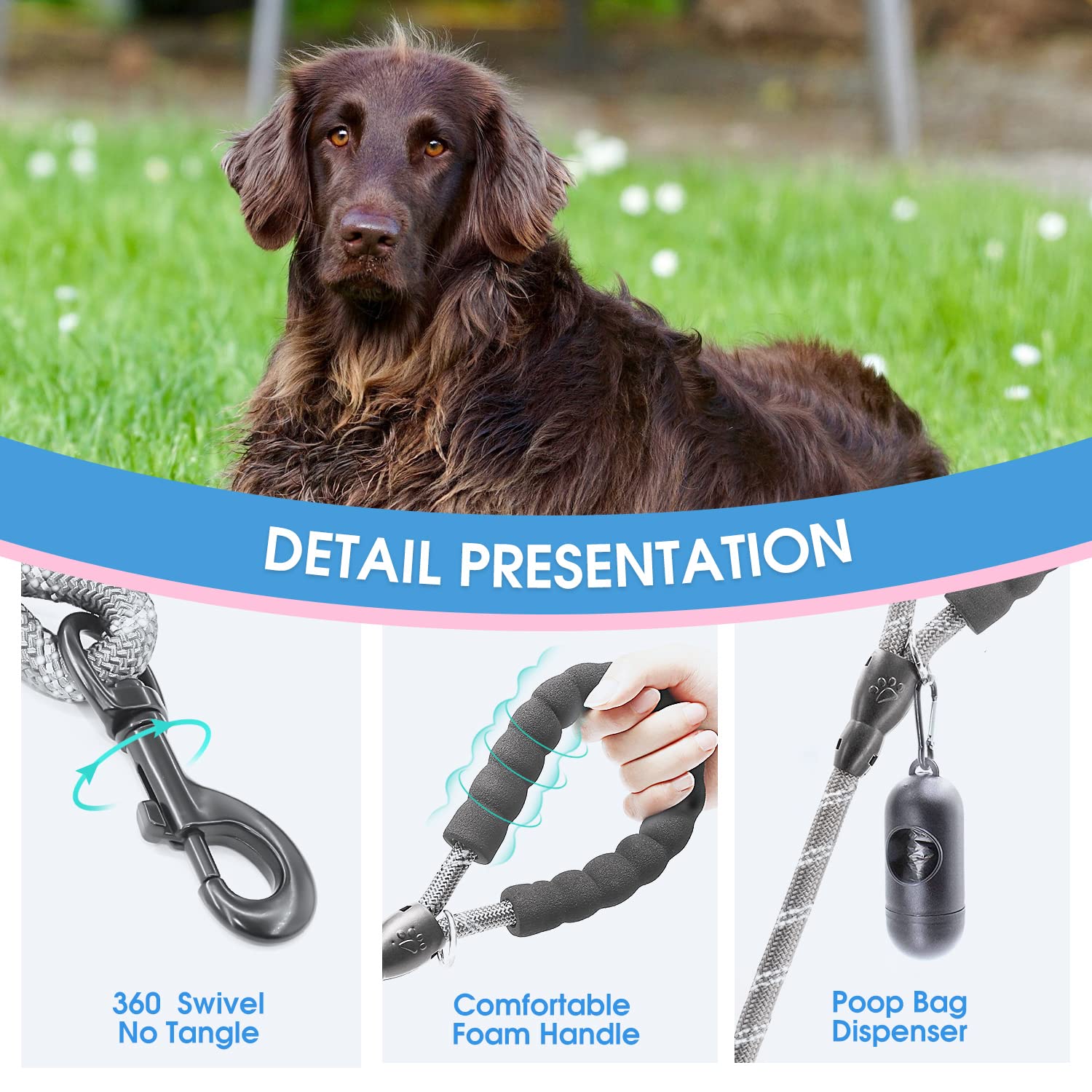 Poop Bags - 4 feet leash includes one bag dispenser with sturdy metal clasp and Poop Bags, the dispenser is reusable, you can refill the bags after running out.