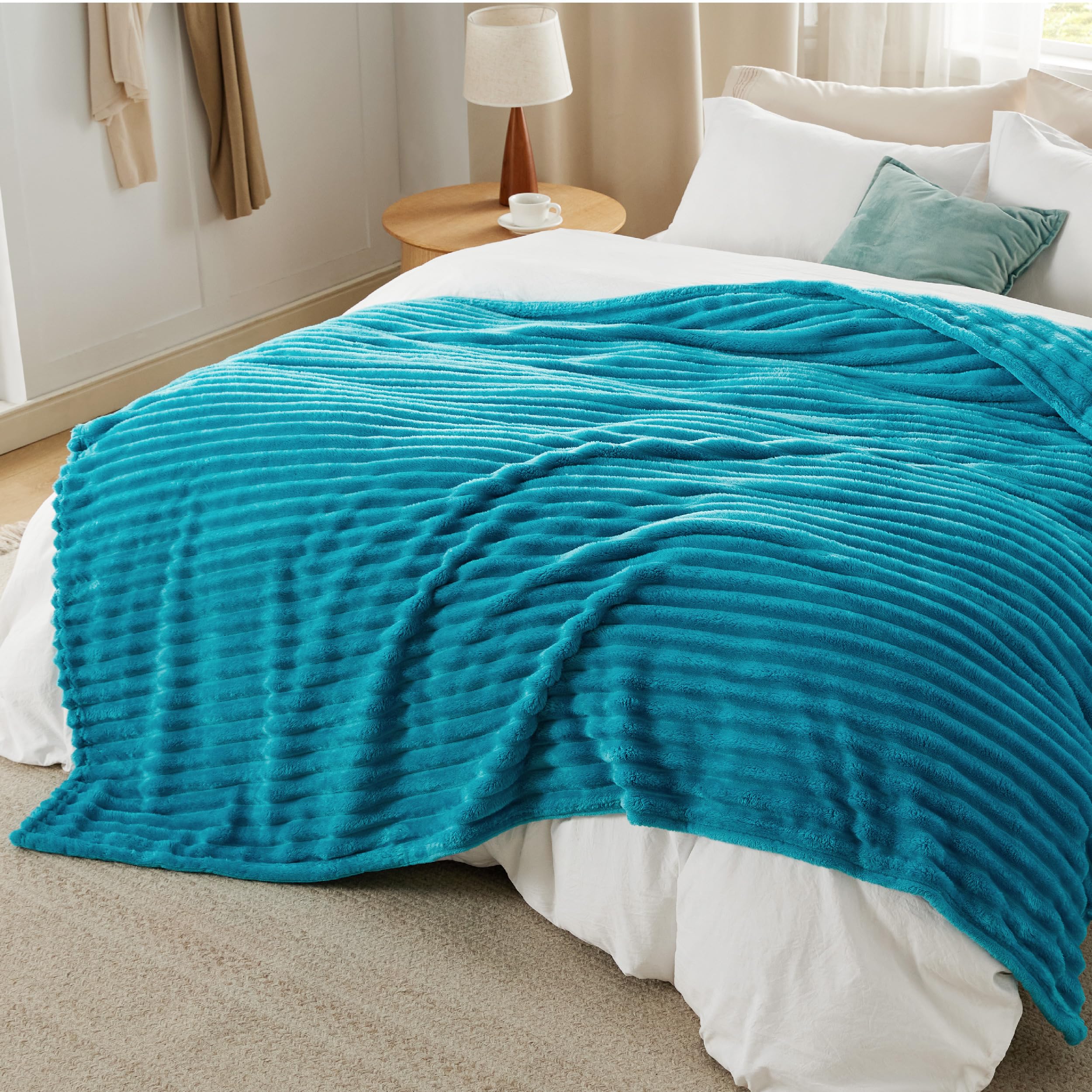 Exquisite Textures: This fuzzy blanket features a classic stripe pattern that creates an underlying unity to coordinate with your room's decor.