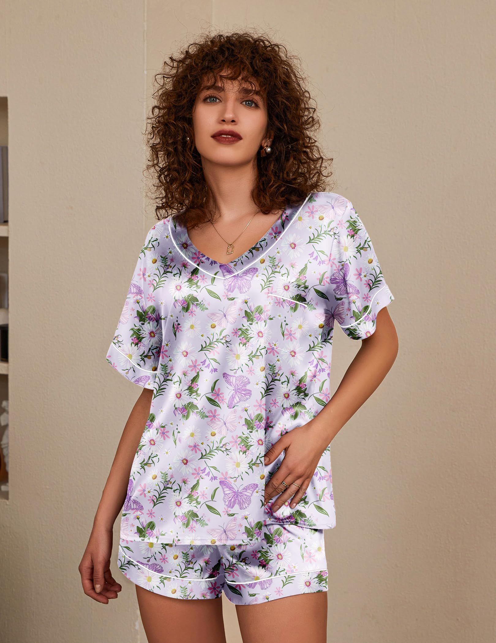 Short Sleeve Top: V neck, cute patterns and solid color, smooth satin top with chest pocket. The loose cut can show your body curve while giving you a burden-free wearing experience