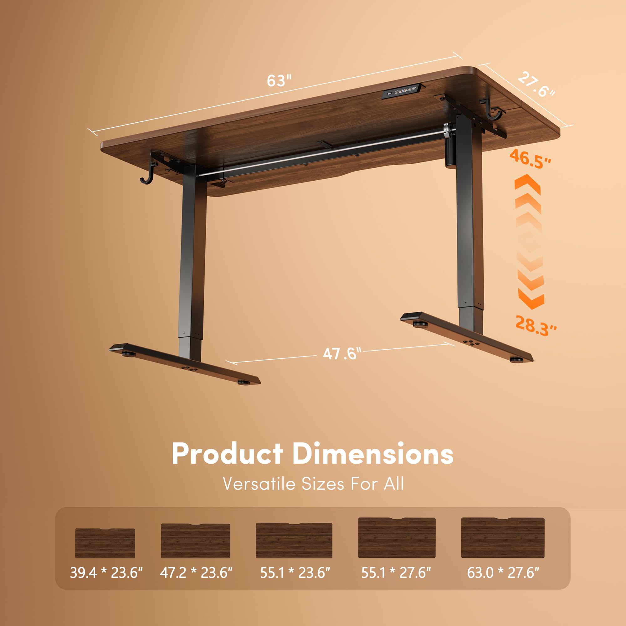 Smooth Height Adjustment: Easily adjust the electric standing desk height from 28.3" to 46.5", save up to 4 preset heights that fit you best, and switch smoothly under 45 dB