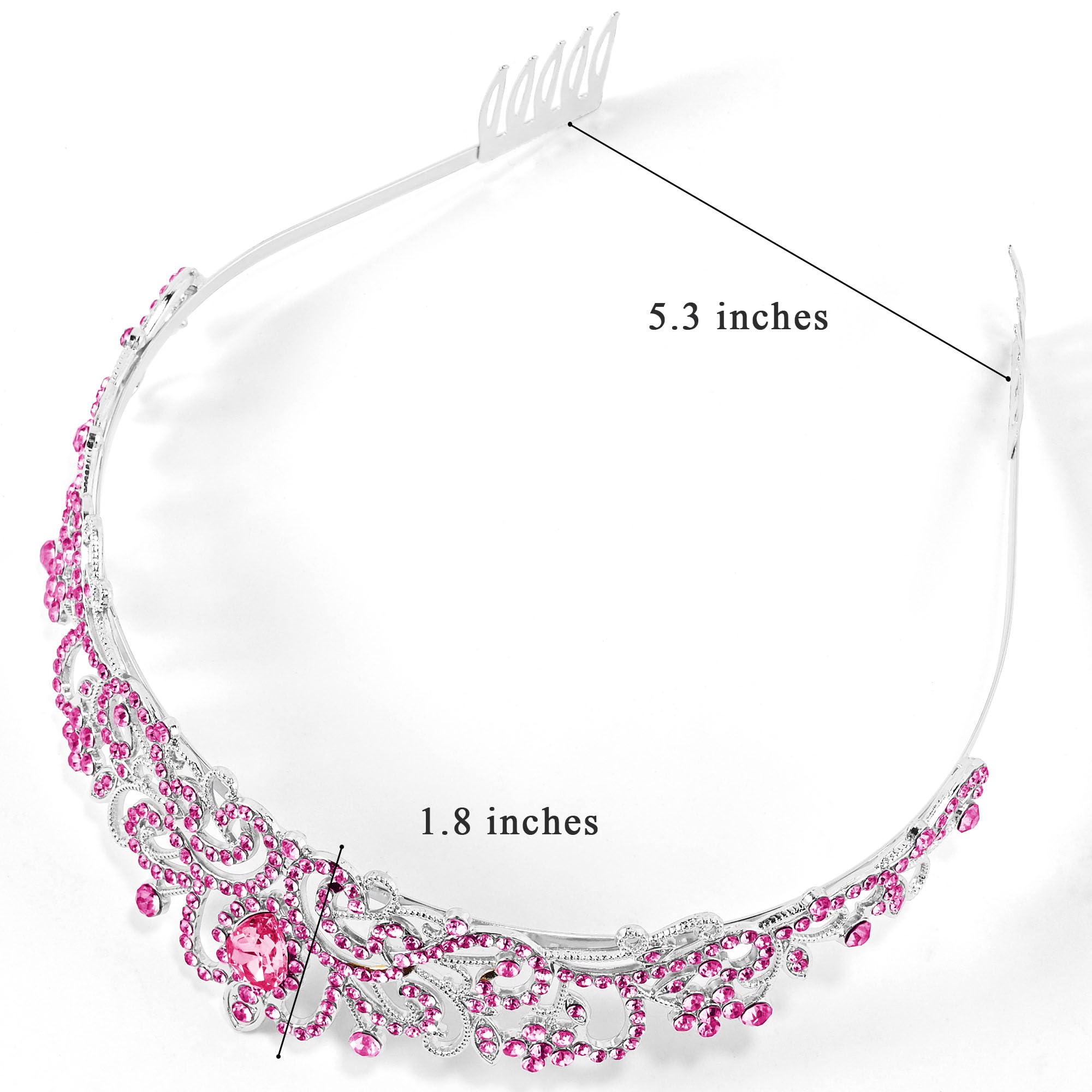 ♕[One Size Fits Most] Height: 1.8 inches / 4.6 cm. Diameter: 5.3 inches / 13.5 cm. Weight: 0.13 lb / 60 g. Princess crown headband is very lightweight. Comfortable to wear. Perfectly fits most women.