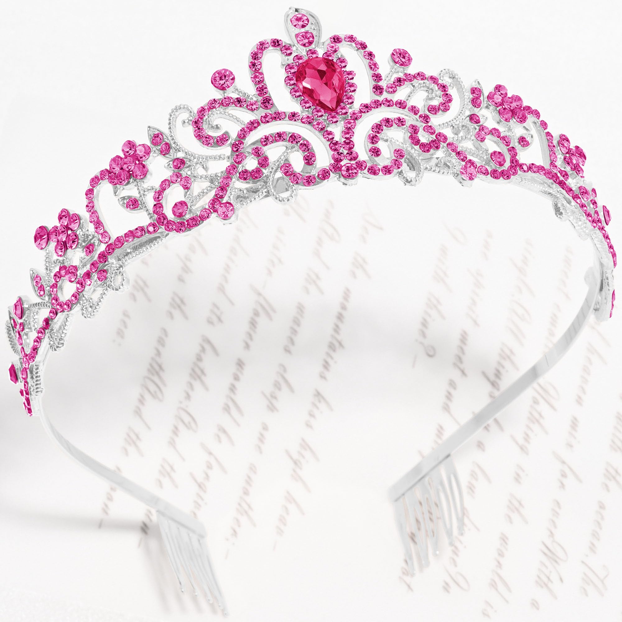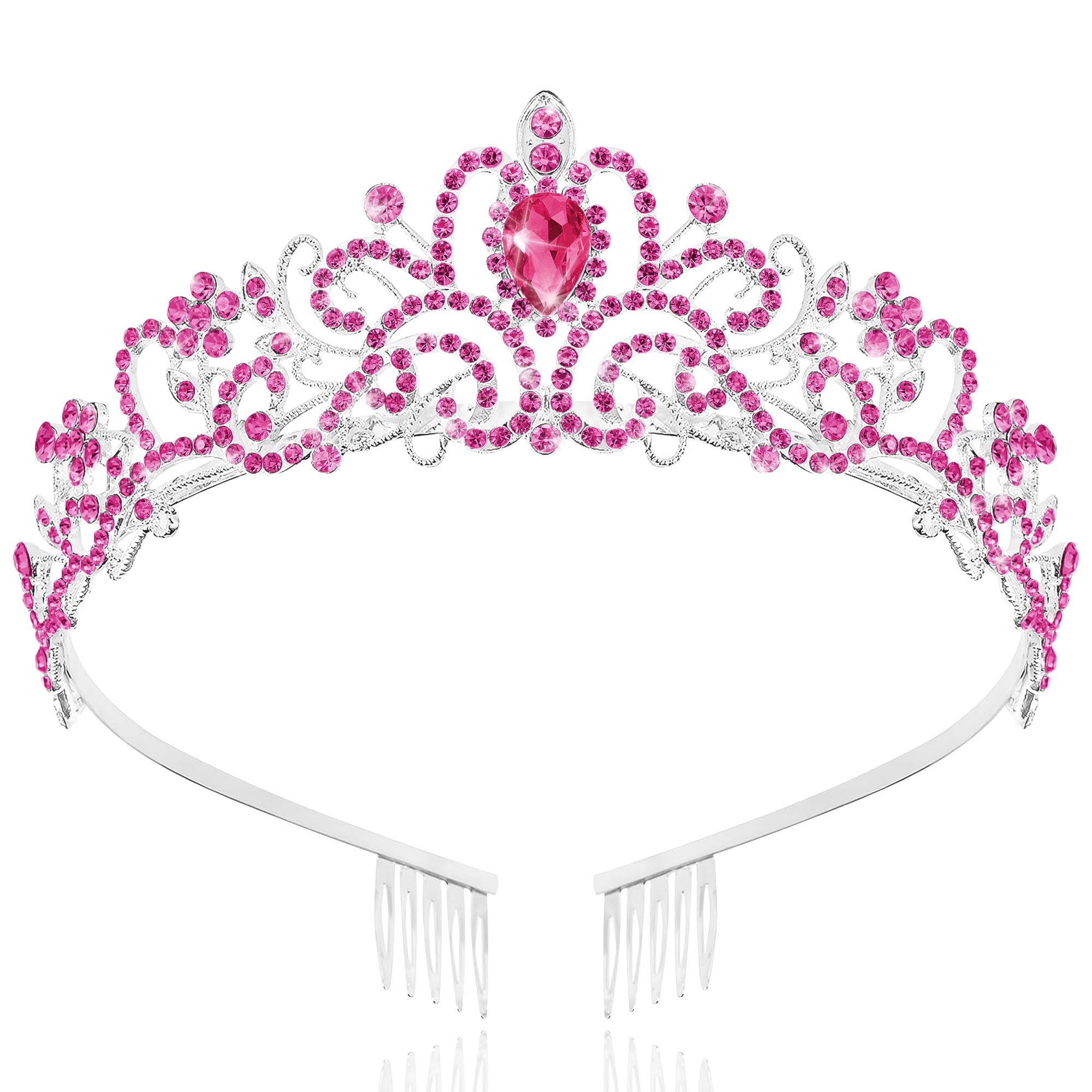 ♕[Side-Comb Design] The both sides of princess tiaras for women are designed with comb. Holds the queen crown well on your head. No more worries about your rose pink crown falling off on the move. The lightweight structure and adjustable comb provide a fit and gentle grip. Make you pretty without any discomfort.