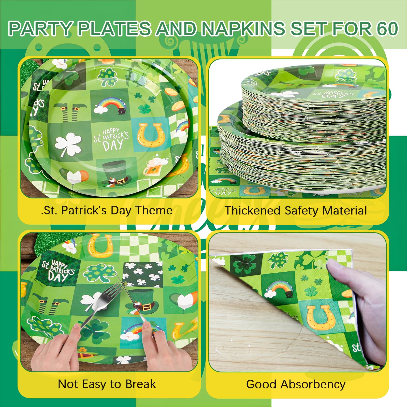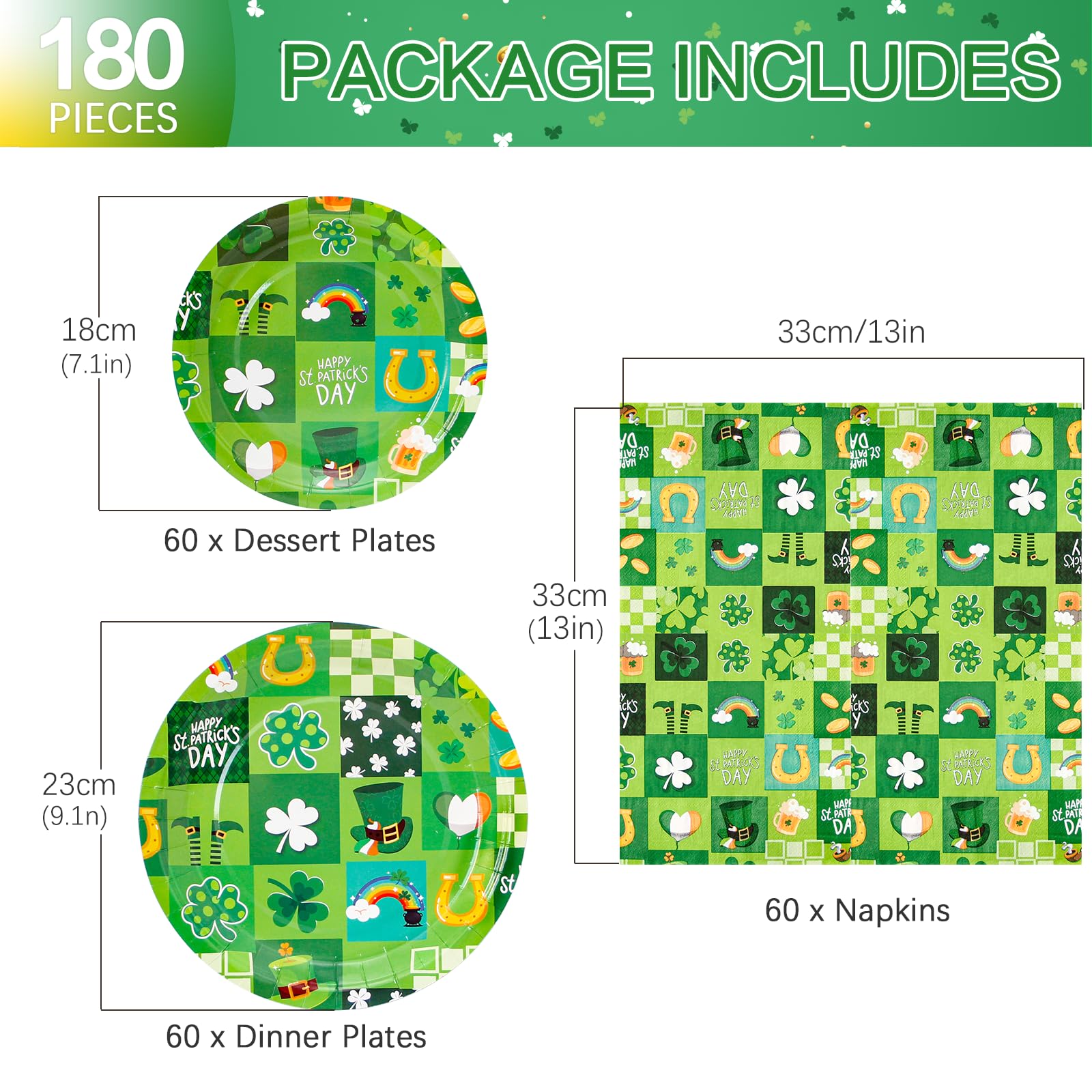 180 Pcs Plates and Napkins Set: This set includes 60 dinner plates (9.1"), 60 dessert plates (7.1"), and 60 napkins, perfect for serving up to 60 guests. From casual dinners to large celebrations, this all-in-one solution ensures a stylish, hassle-free dining experience every time