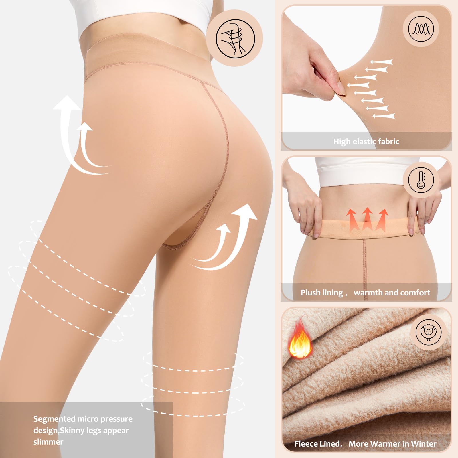 【Fake Translucent Thermal Skin Colored,Fashionable Life】These Fake translucent fleece leggings are perfect for winter. They have the appearance of stockings from the outside but are lined with warm fleece on the inside, providing both style and cozy, Not only show your figure but also keep you warm throughout the colder seasons. These fleece tights have pantyhose and Stirrup style comes in classic, versatile colors like black, grey, and brown, making them easy to match with any outfit.