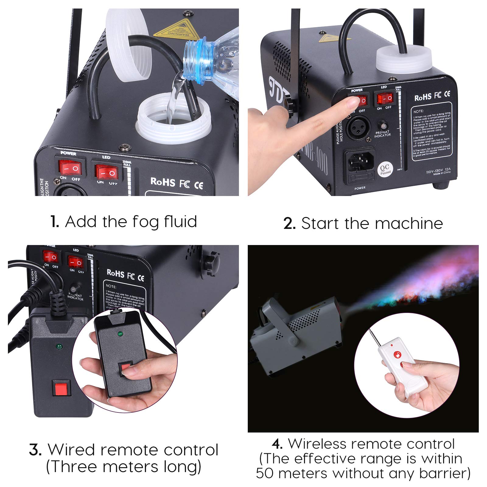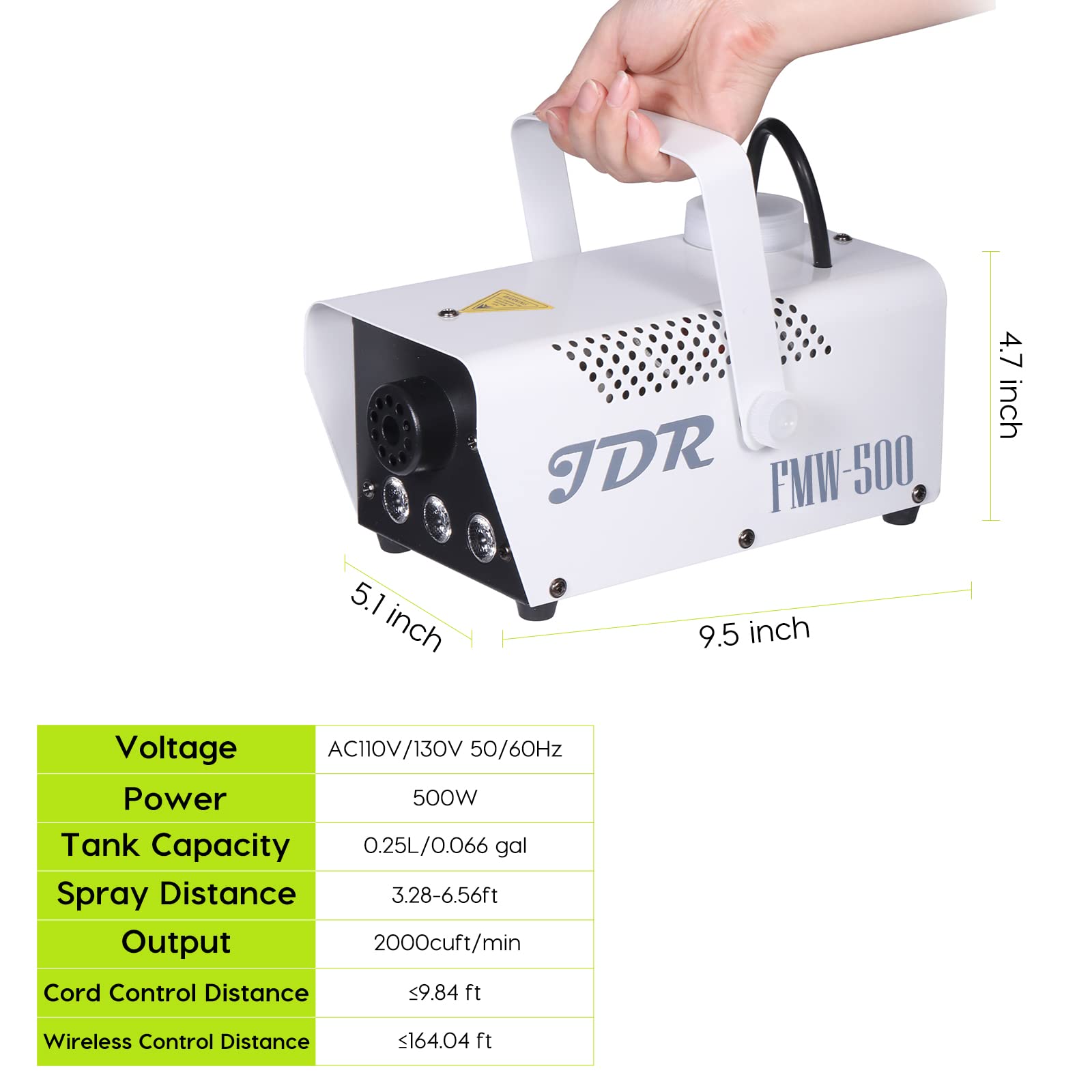 Unique Remote Control: The fog machine is supplied with both a wireless and wired remote control. You can control the fog machine within a 50-meter radius using the wireless controller or use the 3-meter wired controller for control.