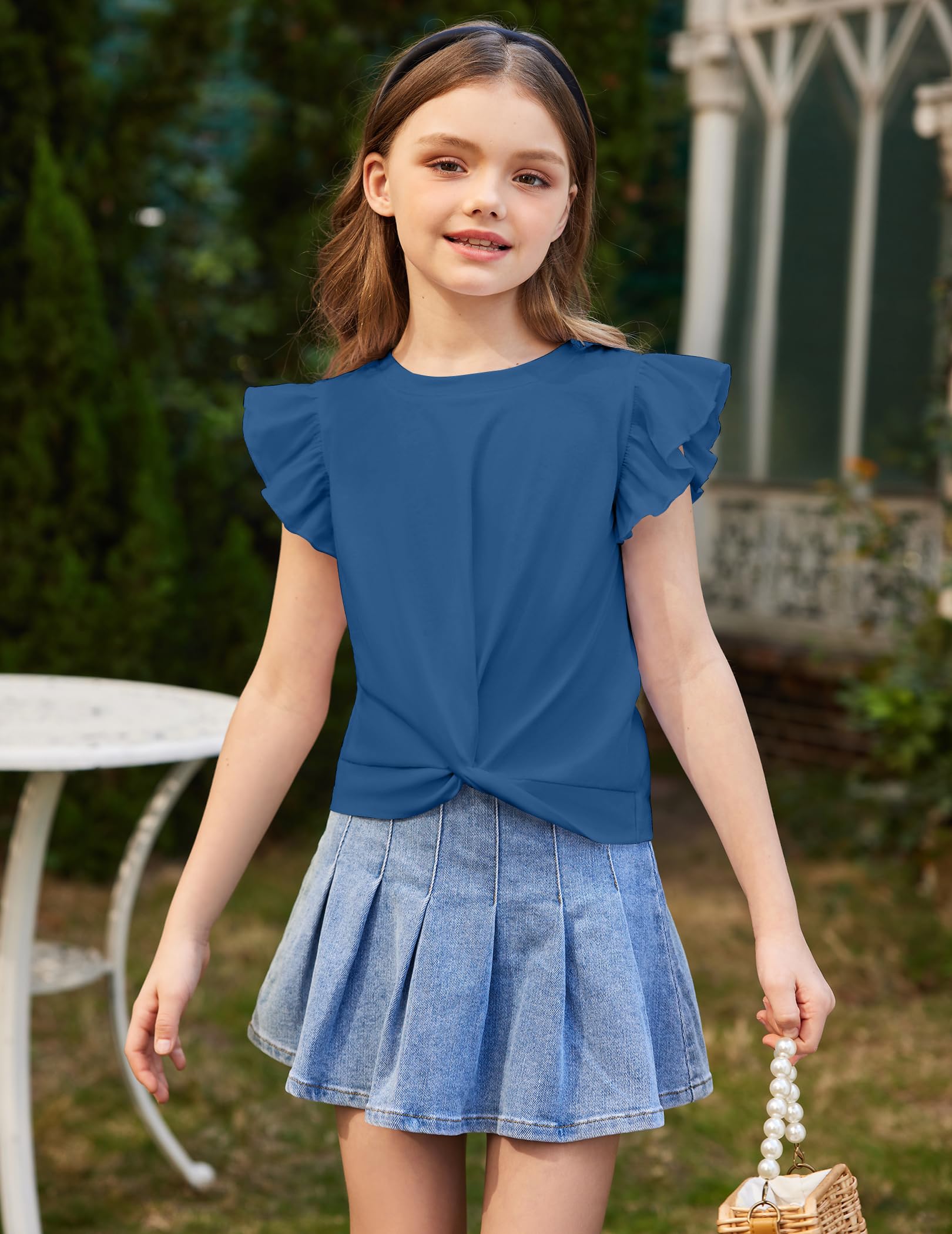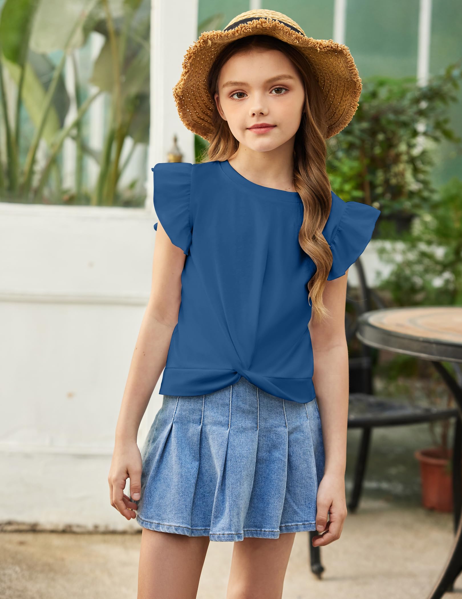 Design:This girl t shirt short sleeve features are designed to Sleeveless type But it comes with a flying sleeve design and are twist front.Full sense of design!So cute girls front twist tops and both ladylike and casual.
