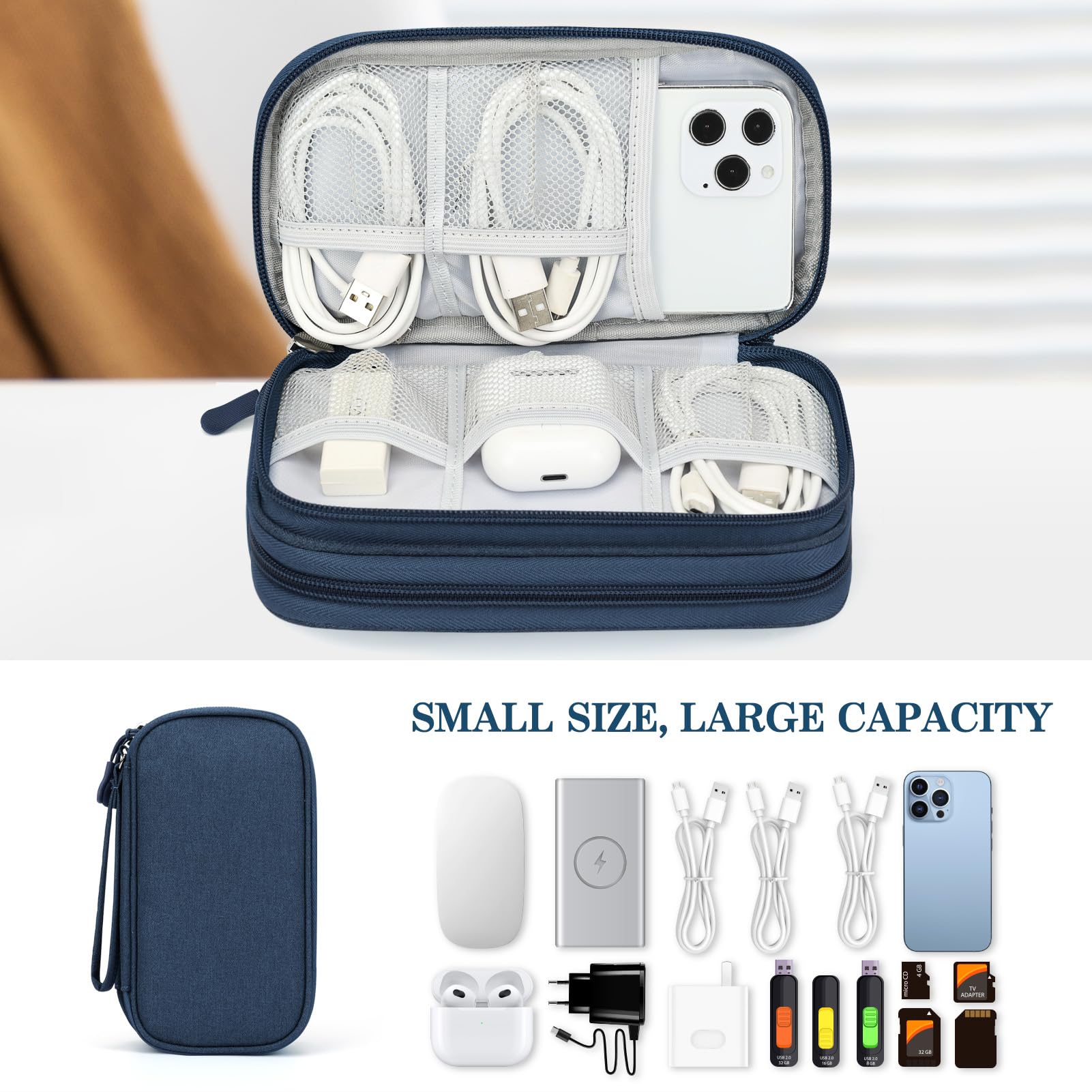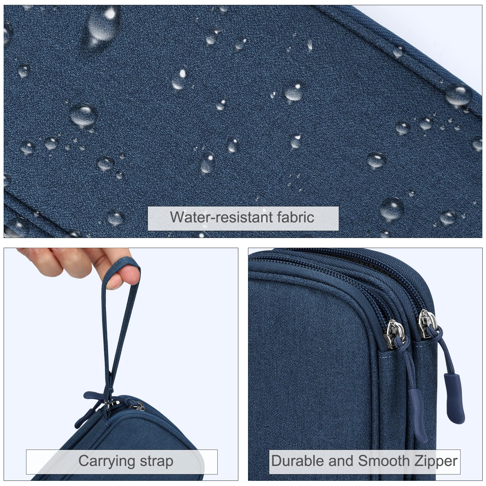 Double Layers Design: The electronics storage bag has 2 layers interior compartment with enough space to take in your cords, cables, USB drive, cellphone, charger, mouse, flash drive, and other accessories.
