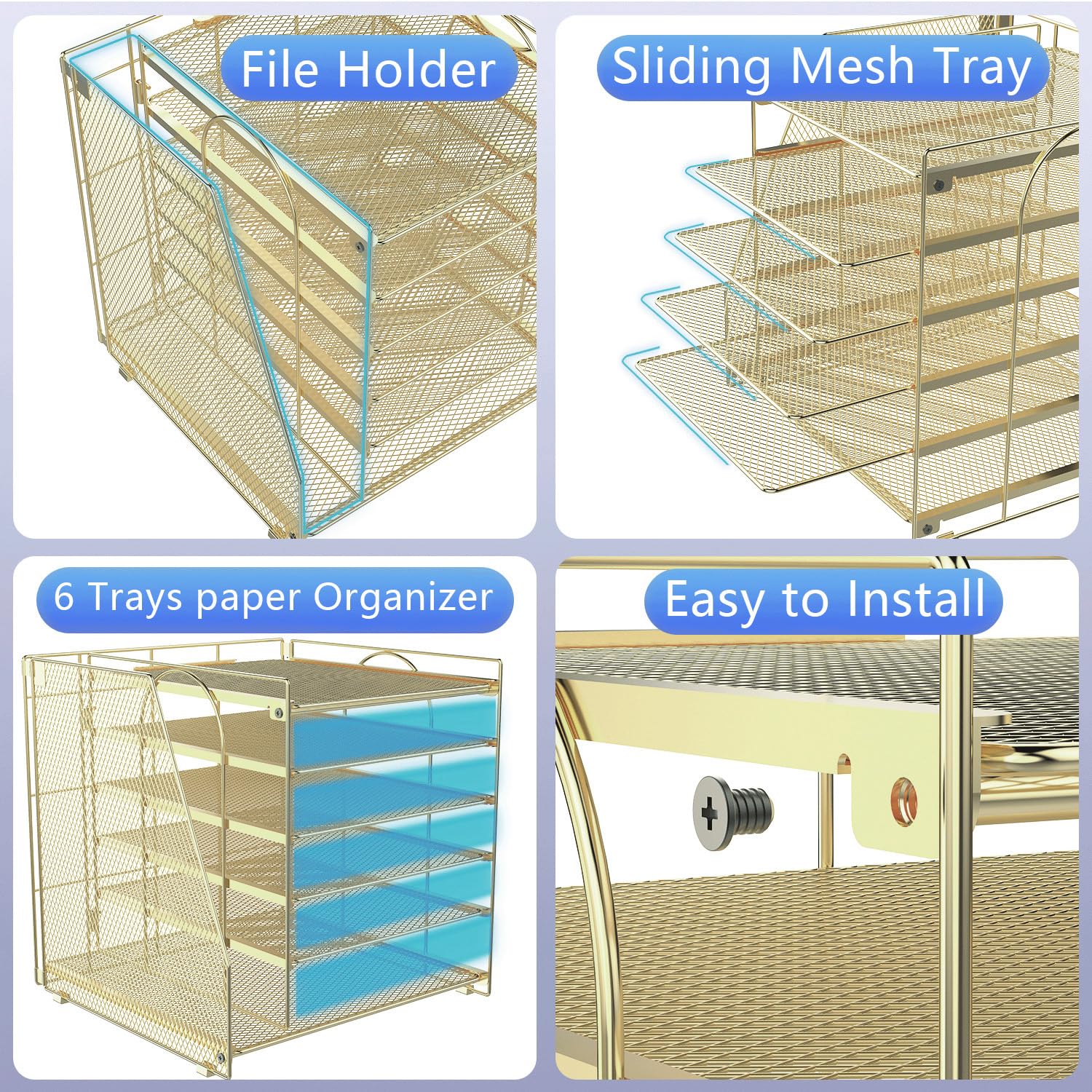 【Improve Efficiency】This desk organizer has 6 tray spaces and a magazine rack, allowing you to accommodate more files and office supplies. It helps you efficiently and quickly differentiate the contents of each compartment, making it easier to store and access items.